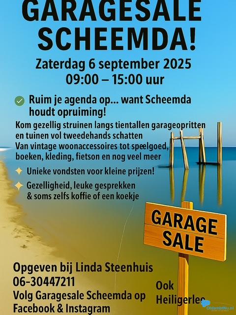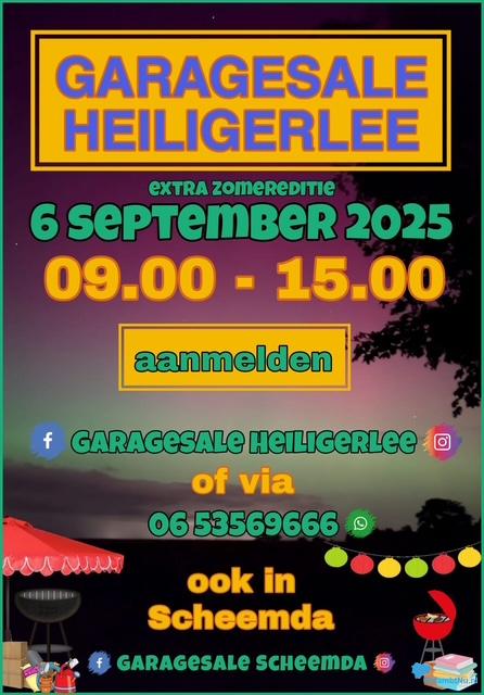 Volg Garagesale Scheemda en Garagesale Heiligerlee op Facebook en Instagram voor het laatste nieuws, deelnemerslijsten en plattegronden.