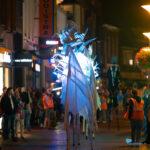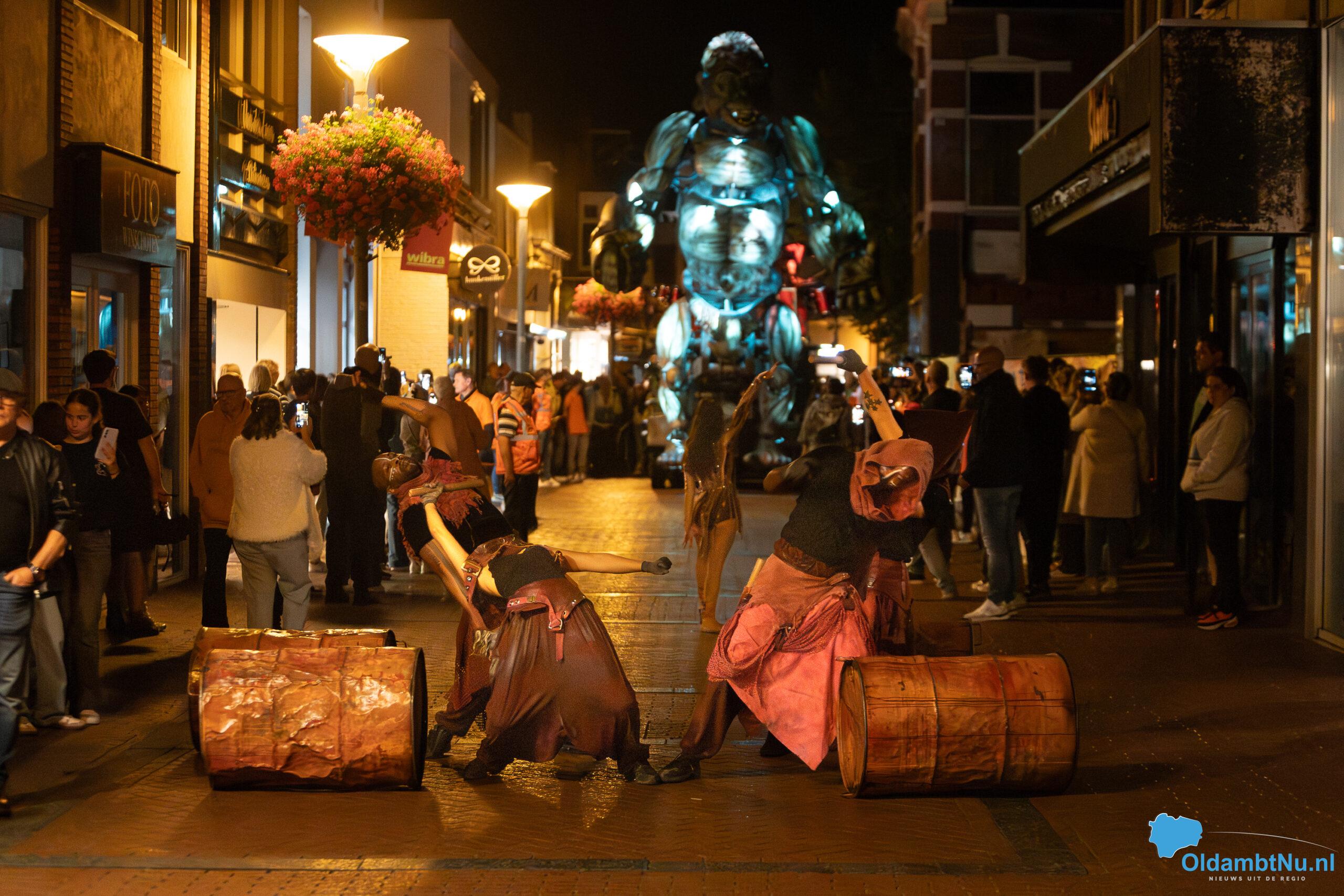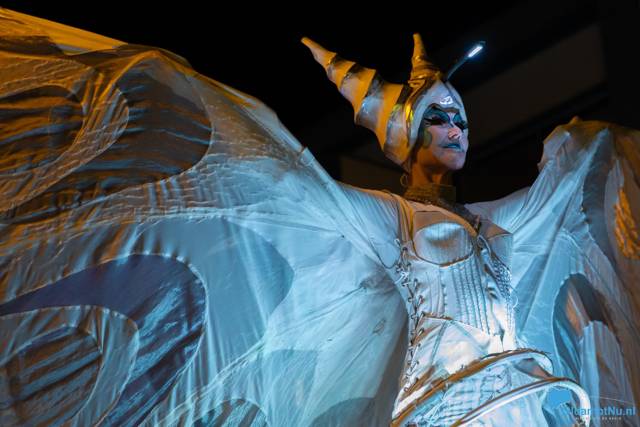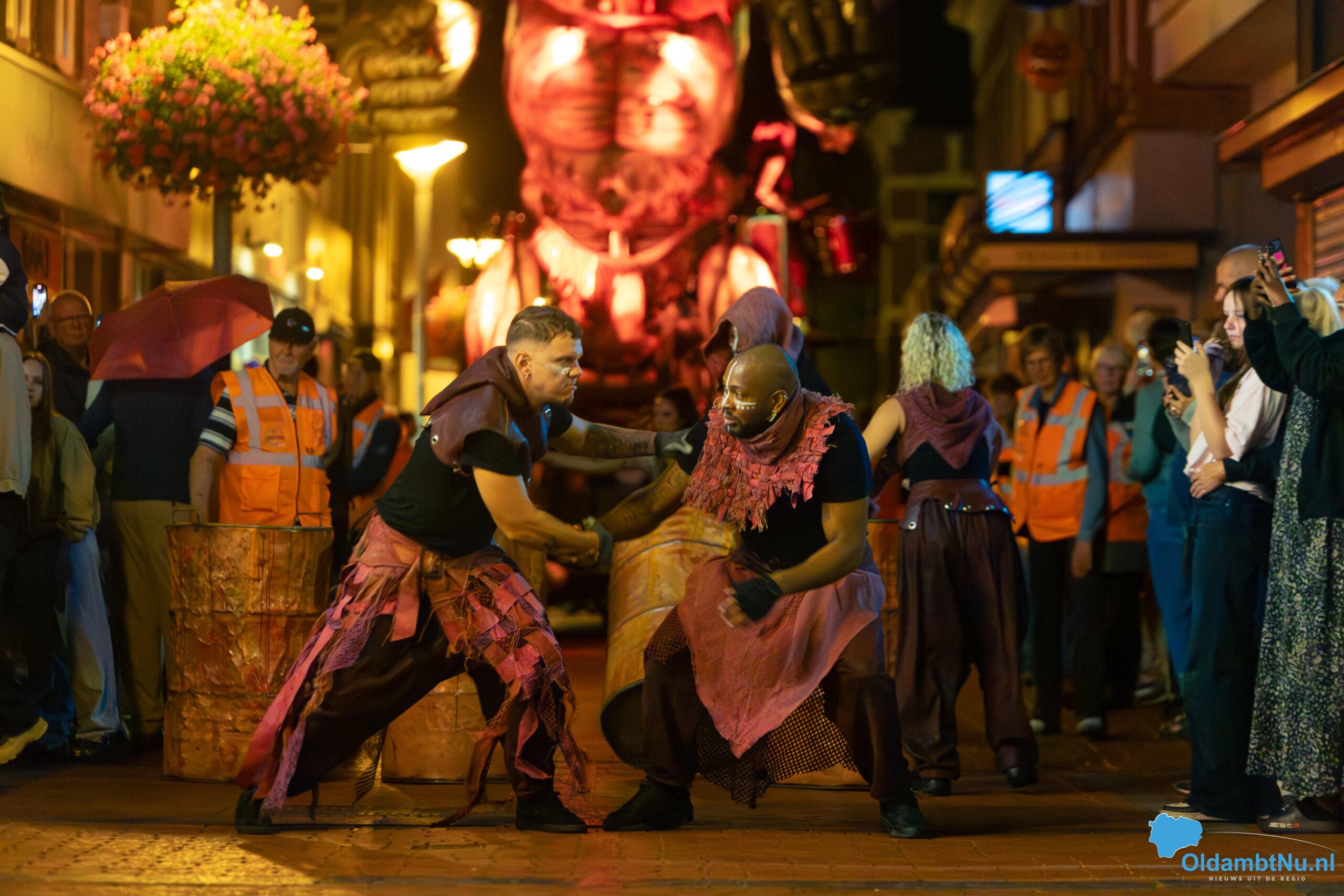 Winschoten – Het straattheaterfestival Waterbei is vrijdagavond officieel van start gegaan met een parade die het publiek door het centrum van Winschoten meenam. Om 21.30 uur vertrok de stoet vanaf Cultuurhuis De Klinker richting het Marktplein, voorafgaand was de opening door wethouder Jurrie Nieboer.