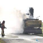 Hierdoor ontstond brand die zich razendsnel verspreidde door de machine. Binnen korte tijd stond de graafmachine volledig in lichterlaaie. De brandweer rukte uit en kreeg het vuur na enige moeite onder controle. Door de aanwezigheid van brandbare vloeistoffen laaiden de vlammen telkens opnieuw op, maar uiteindelijk kon het vuur worden geblust.