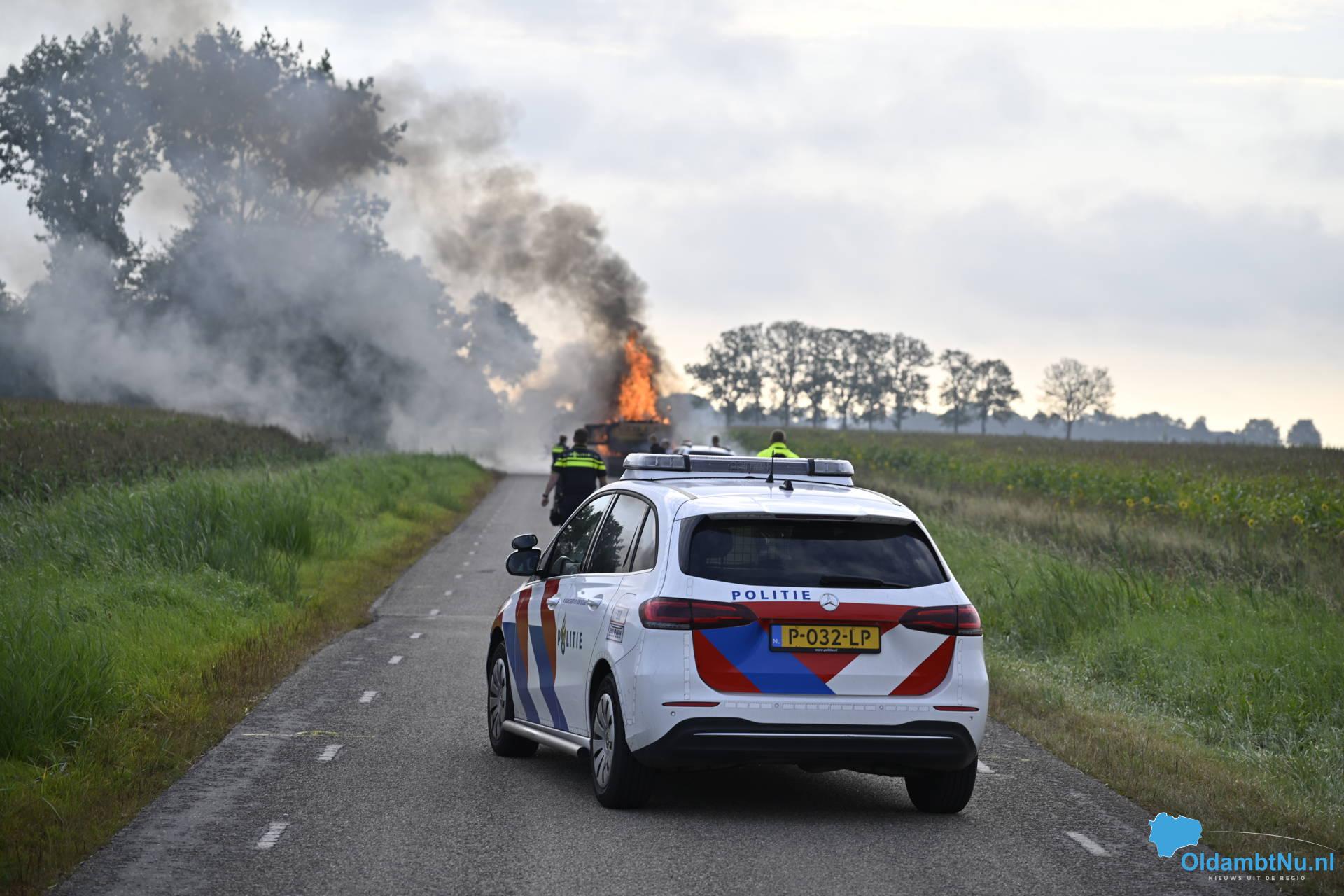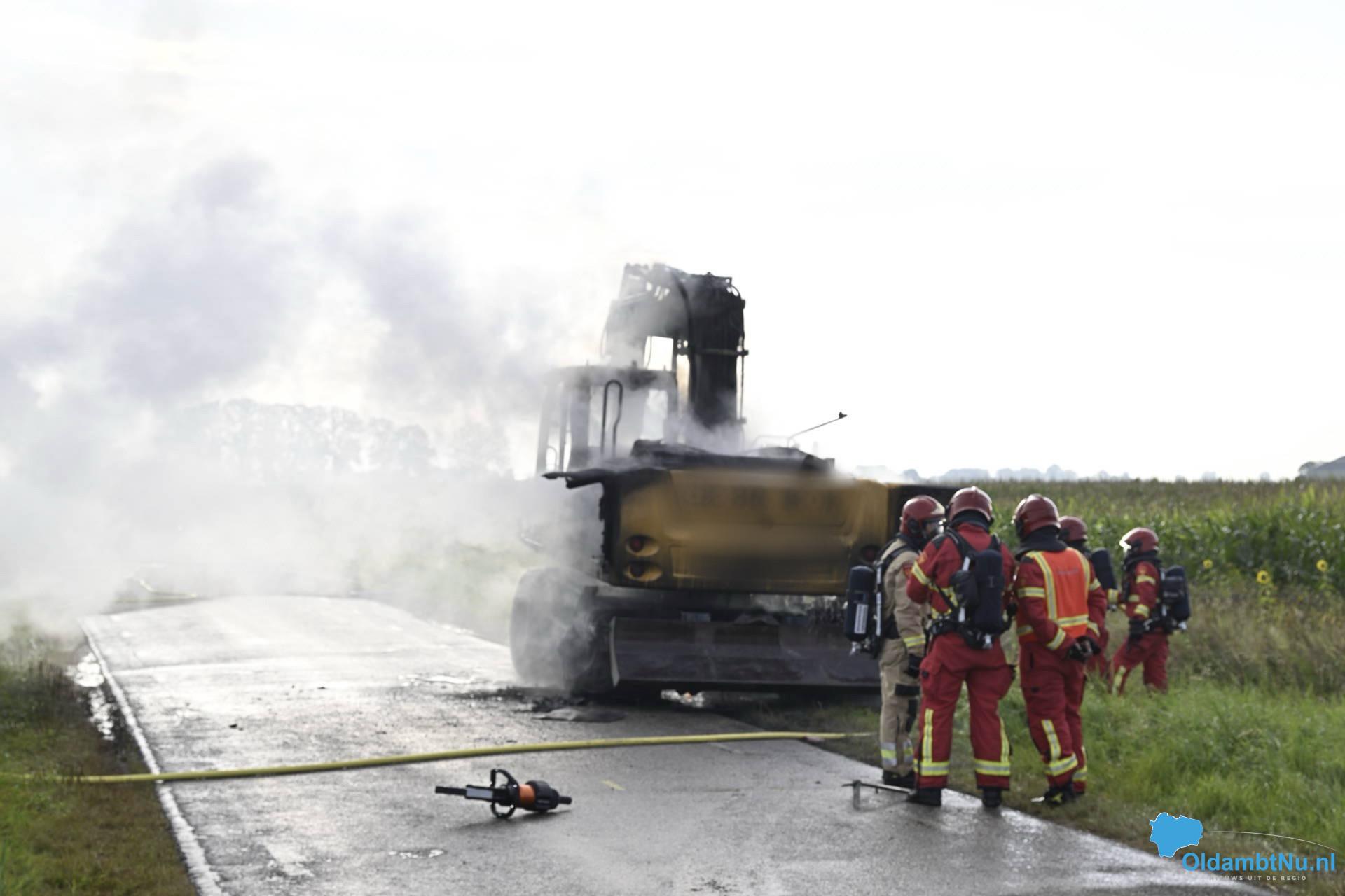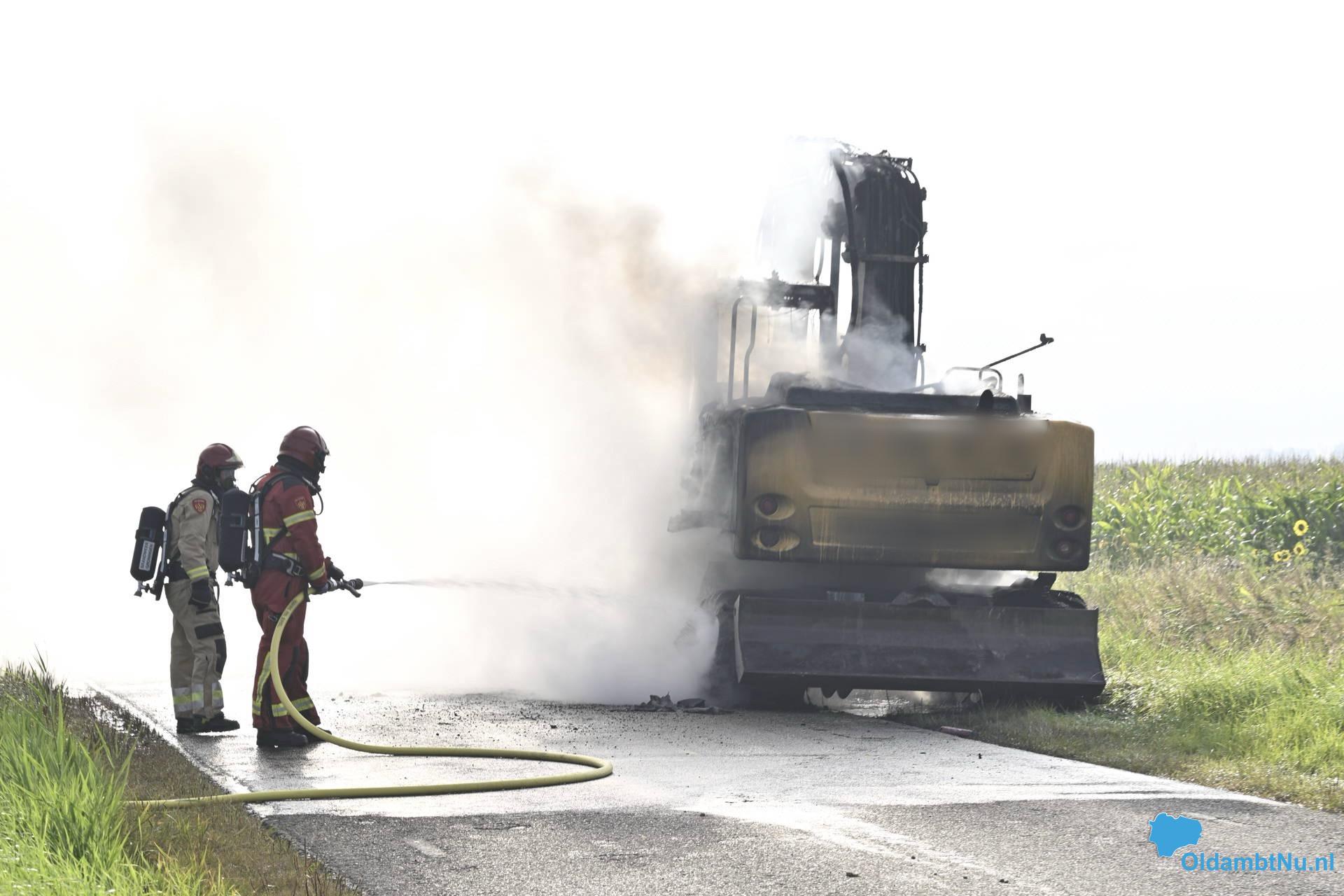 Nieuwolda – Aan de Heemweg tussen Nieuwolda en Woldendorp is zaterdagochtend een graafmachine volledig uitgebrand. Tijdens het rijden brak volgens de bestuurder een aandrijfas, waarna vermoedelijk een brandstof- of hydraulische leiding werd geraakt.