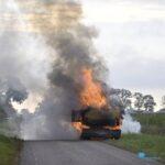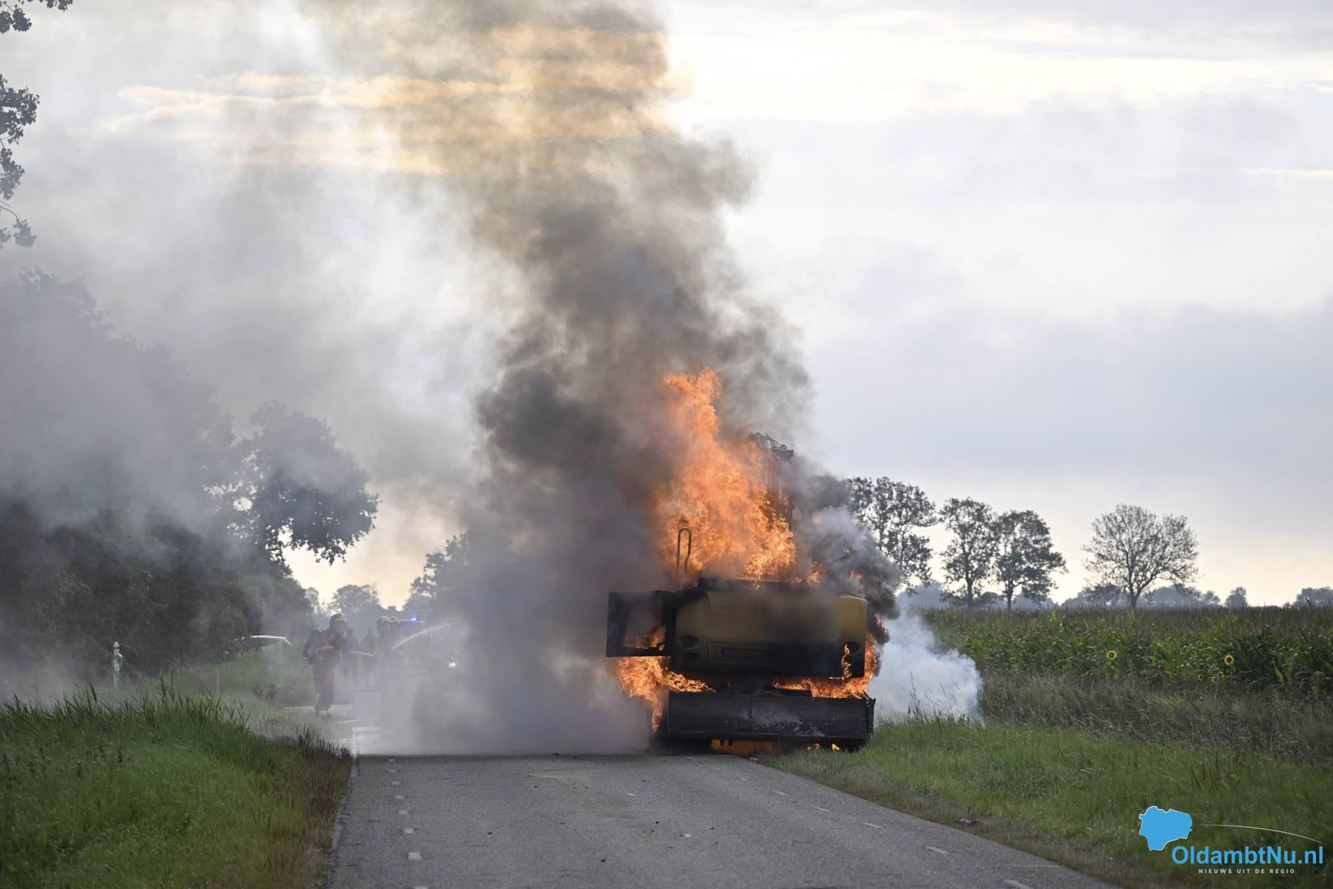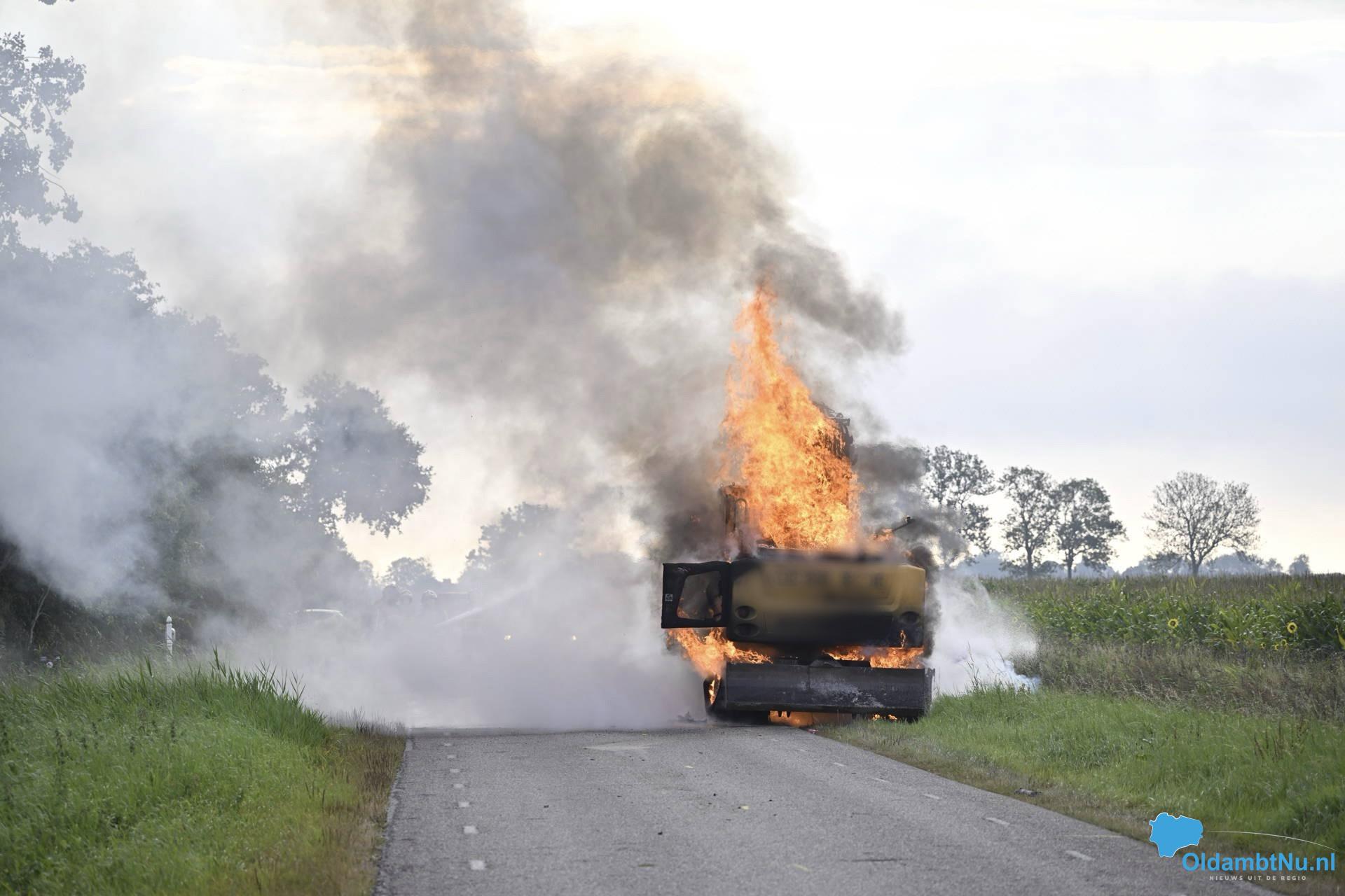Hierdoor ontstond brand die zich razendsnel verspreidde door de machine. Binnen korte tijd stond de graafmachine volledig in lichterlaaie. De brandweer rukte uit en kreeg het vuur na enige moeite onder controle. Door de aanwezigheid van brandbare vloeistoffen laaiden de vlammen telkens opnieuw op, maar uiteindelijk kon het vuur worden geblust.