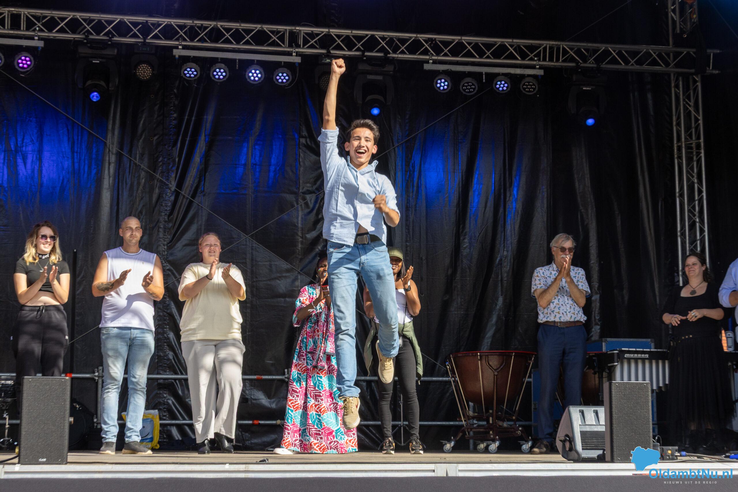 De winnaar zou dezelfde avond nog een keer mogen optreden op het podium, voor het concert aan van het Noord Nederlands Orkest. En de gelukkige winnaar werd de nog maar 15-jarige Oldambtster Emile Teuben met een door hem zelf aangepast lied.