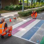Regenboogzebrapad Winschoten opnieuw geverfd