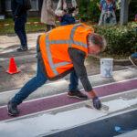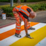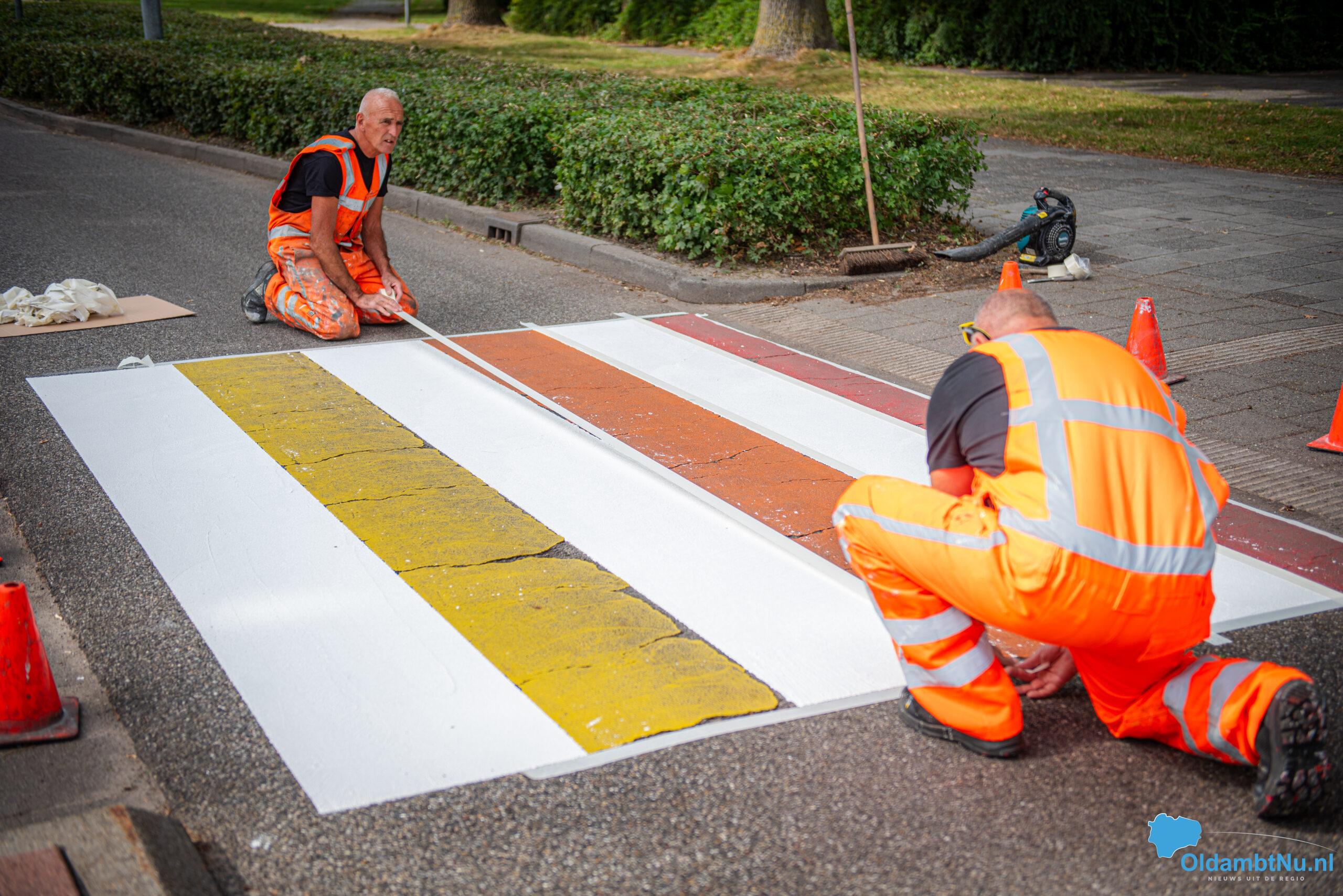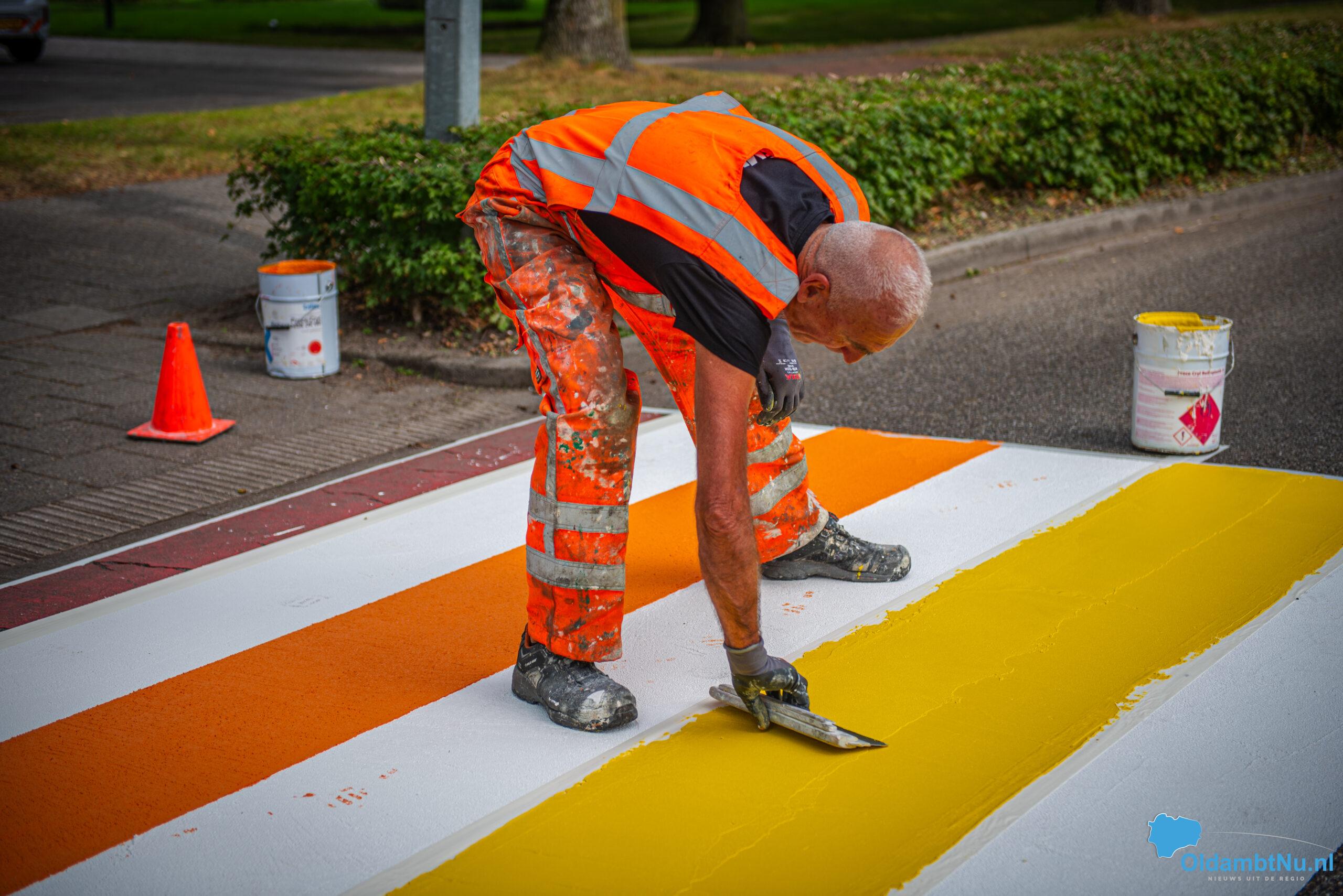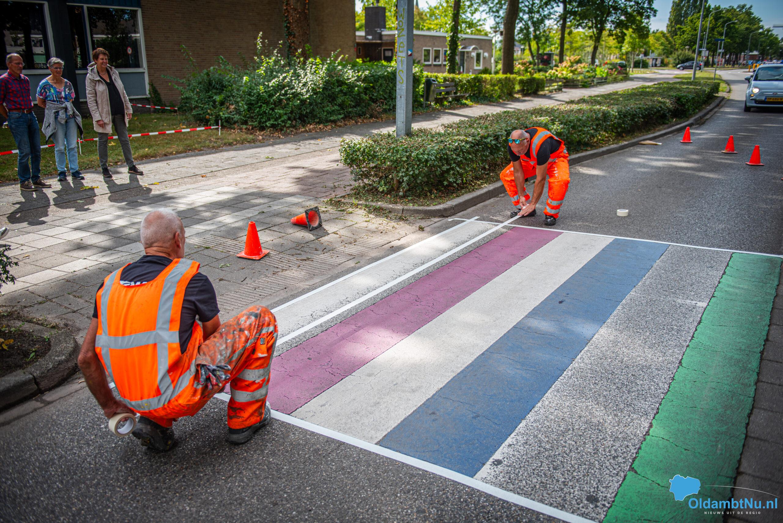 Winschoten – Het regenboogzebrapad aan de Mr. D.U. Stikkerlaan in Winschoten heeft woensdagmiddag een frisse verflaag gekregen. Het pad, dat sinds oktober 2016 het straatbeeld siert, werd eerst grondig schoongemaakt en daarna opnieuw in de regenboogkleuren geschilderd.