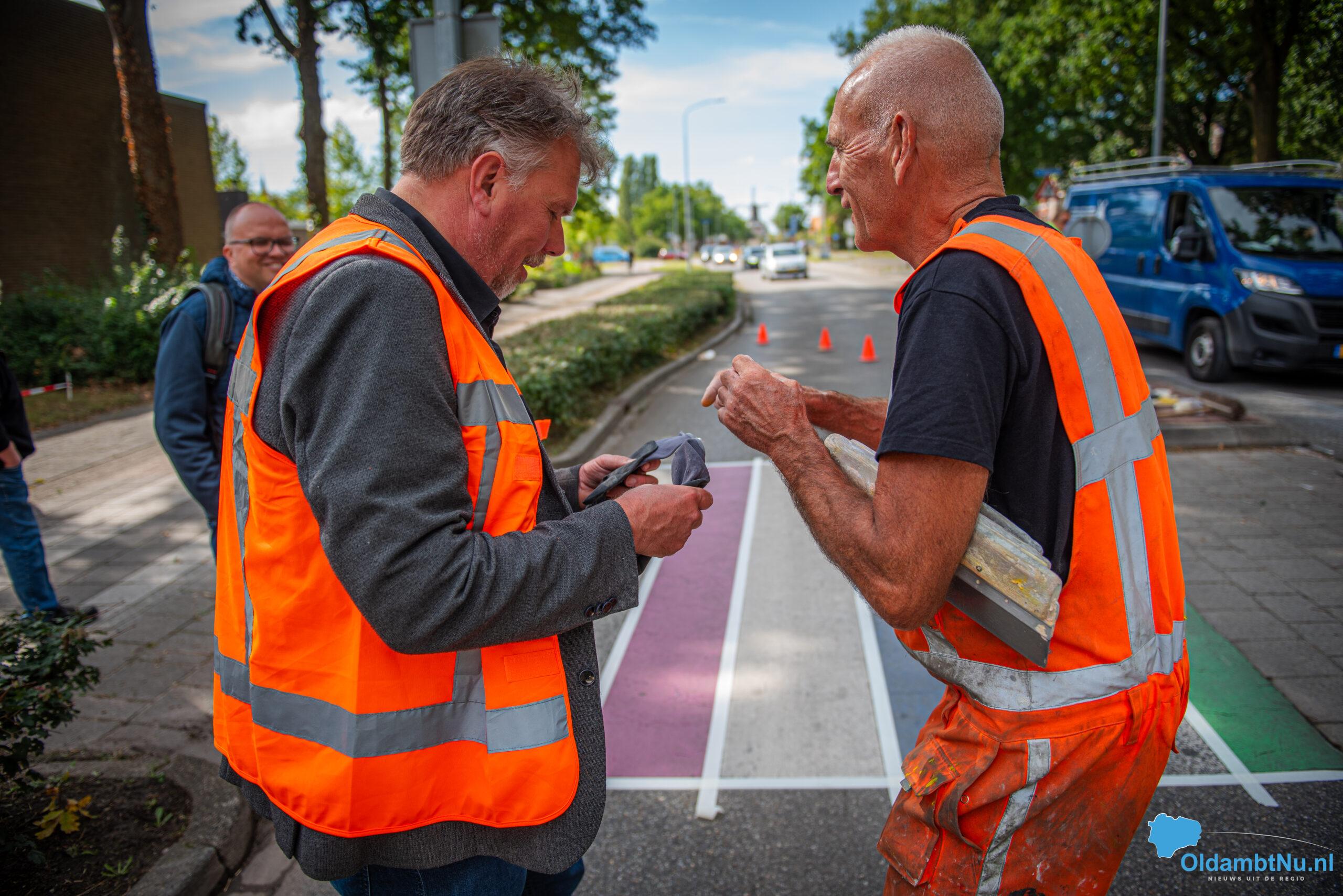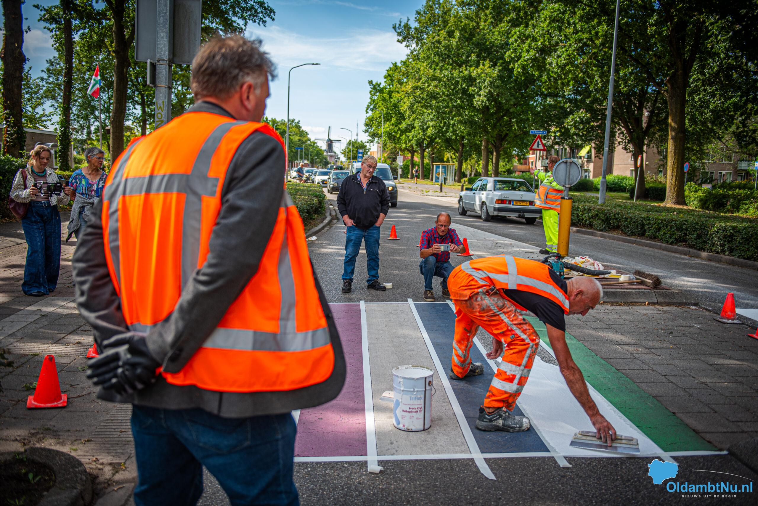 Wethouder Gert Engelkens van de gemeente Oldambt, verantwoordelijk voor het diversiteitsbeleid, was hierbij aanwezig en hielp mee met verven. Daarmee onderstreepte hij opnieuw het belang van zichtbare symbolen die bijdragen aan acceptatie en gelijkheid.