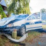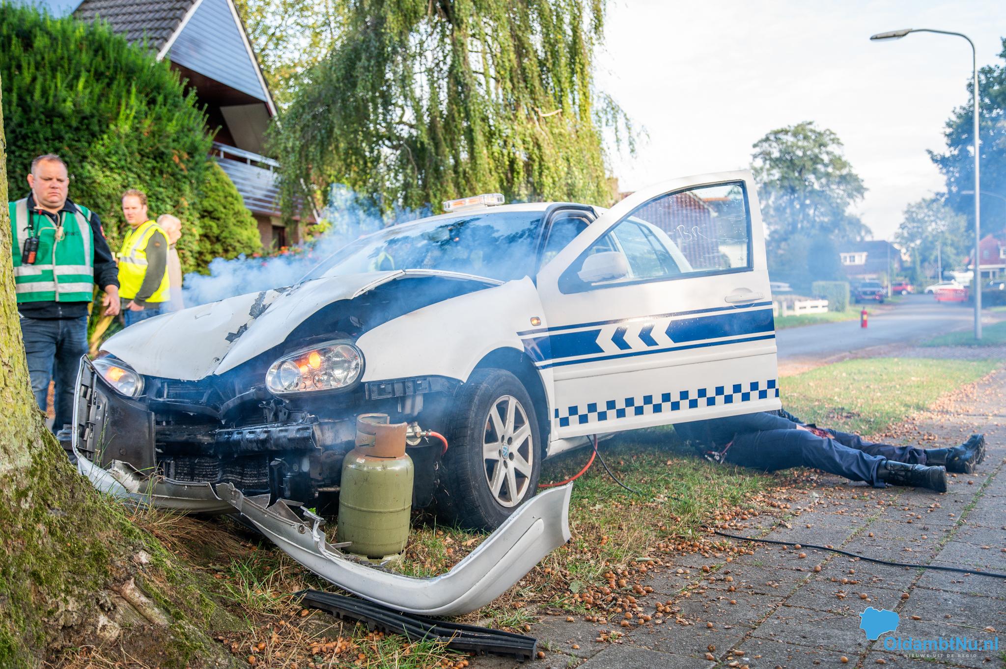 Alsof dat nog niet genoeg was, vond onderweg naar het incident ook een verkeersongeval plaats. Een handhaver verloor de controle over het stuur en botste tegen een boom. Toen de deelnemende brandweerploegen arriveerden, troffen zij het voertuig tegen de boom aan. Het ongeval moest eerst worden afgehandeld, voordat de brand in het pand kon worden bestreden.