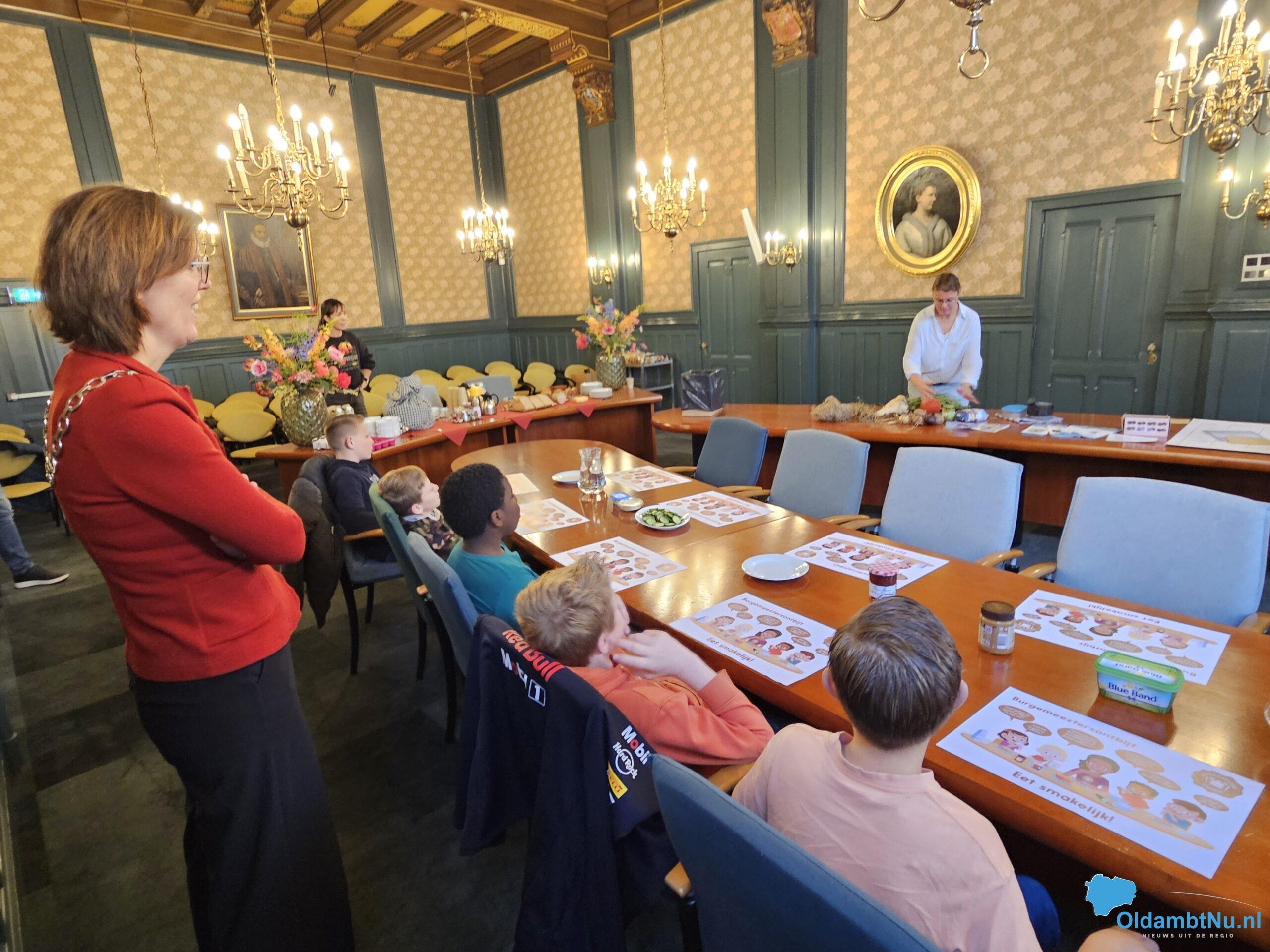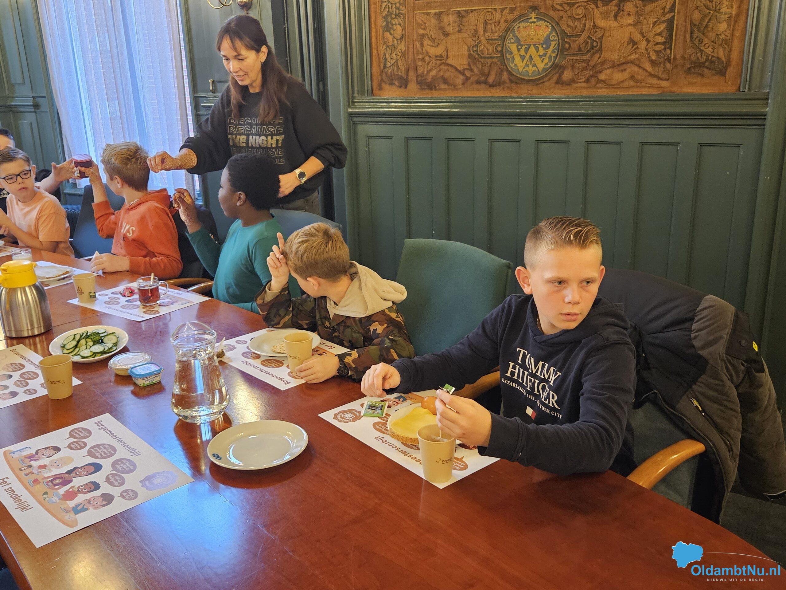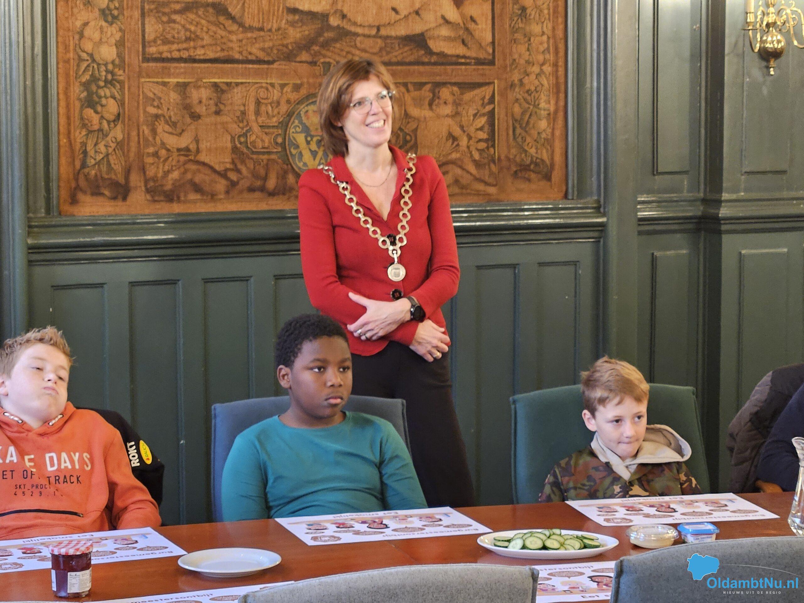 Winschoten – Het belang van een goed en gezond ontbijt staat hoog op de maatschappelijke agenda. Jaarlijks schuiven een kleine 300 burgemeesters met bakkers, boeren, telers en basisscholen uit de regio aan tafel om te leren en ervaren over een gezond ontbijt. Het is namelijk een feit dat veel kinderen niet, niet altijd of niet gezond ontbijten. En dat heeft impact op de leerprestaties. Aandacht hiervoor blijft belangrijk, zodat alle kinderen gelijke kansen krijgen. Op vrijdag 10 oktober ontving burgemeester Sikkema negen leerlingen van de Bladergroenschool om samen te ontbijten.