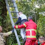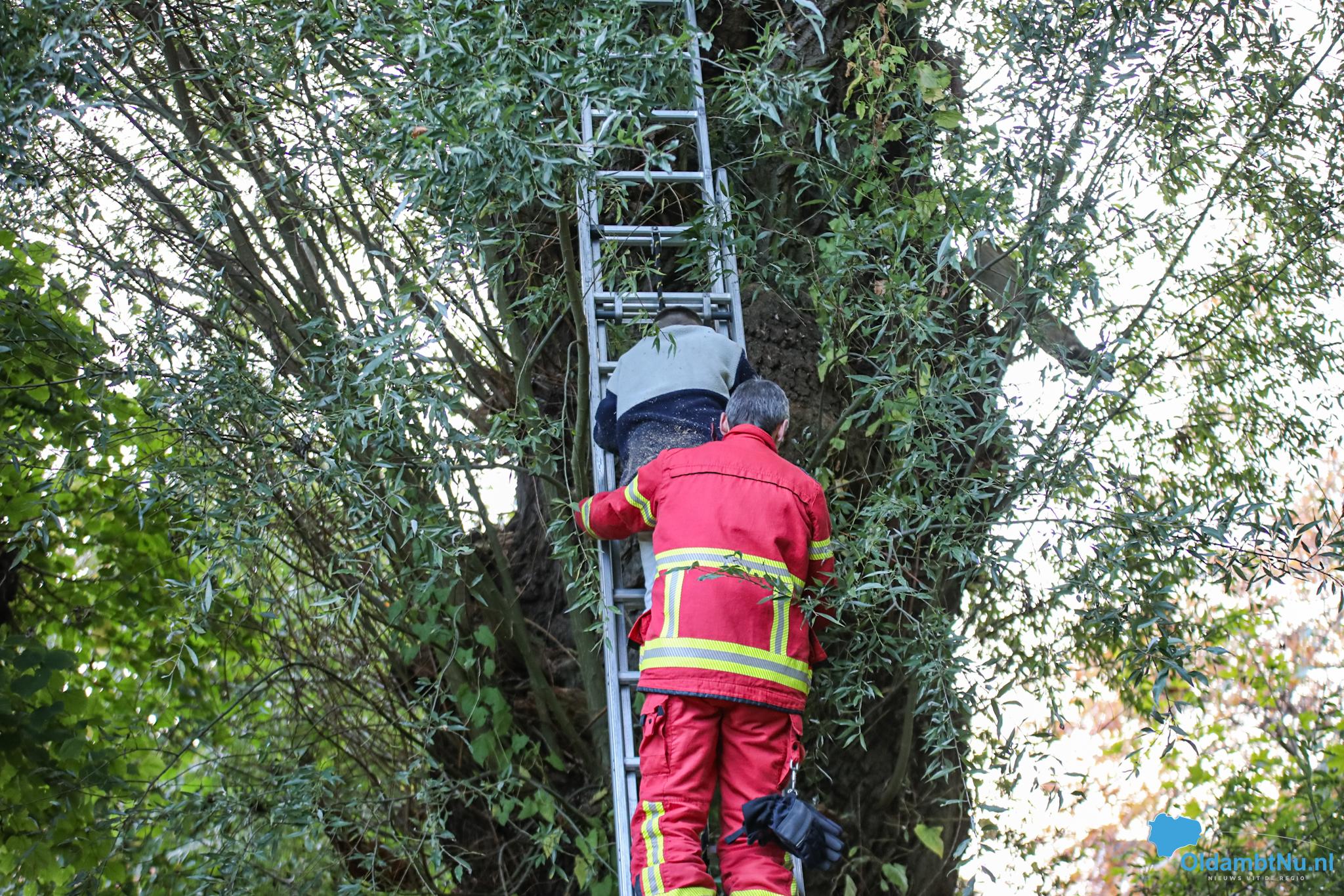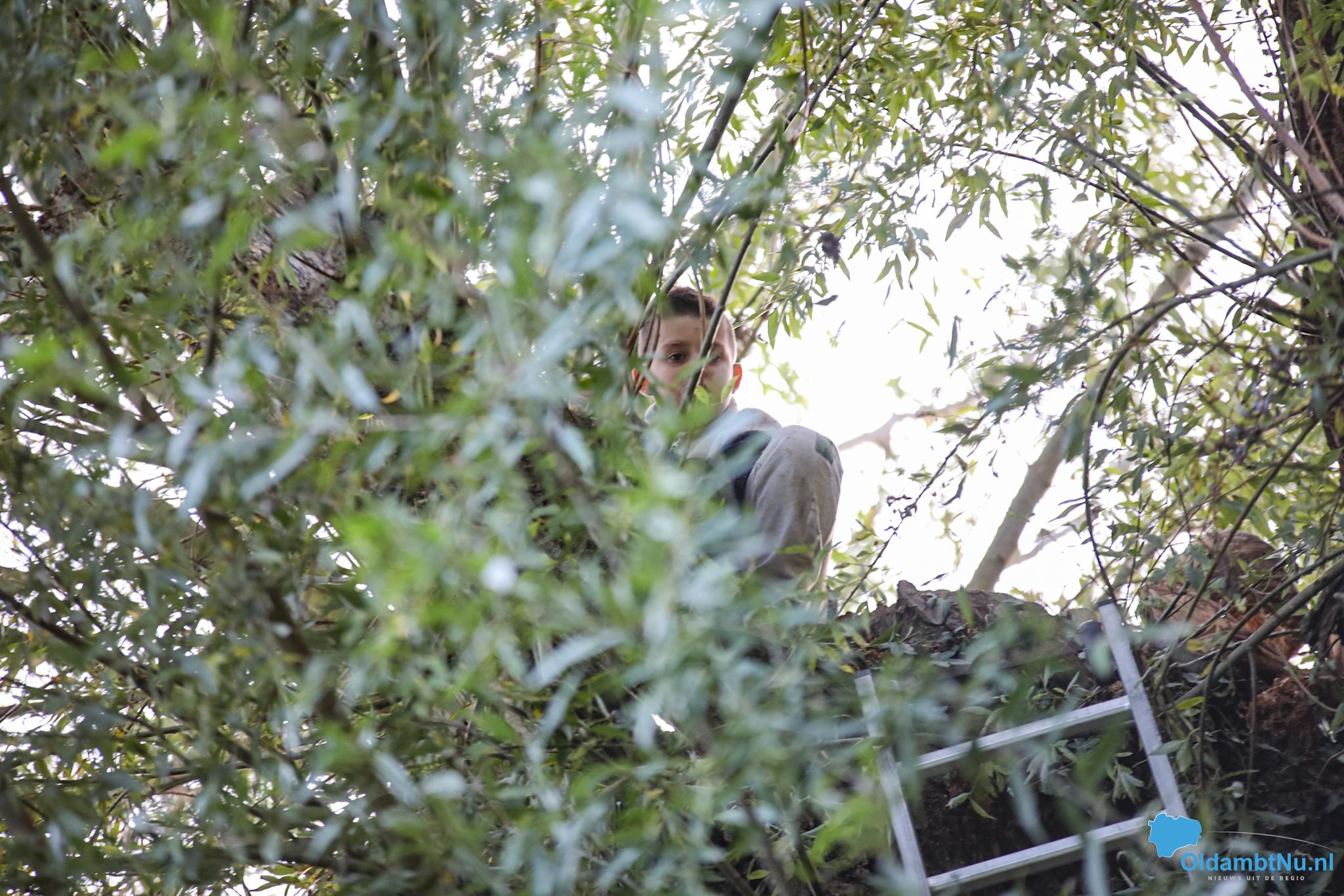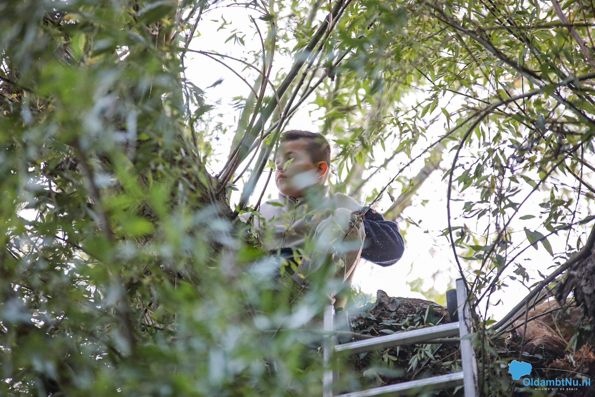Scheemda – De brandweer van Scheemda rukte zaterdagmiddag uit voor een opmerkelijke melding aan de Donellenlaan. In het park was de 9-jarige Jessie hoog in een boom geklommen, maar kon er niet meer zelfstandig uitkomen.