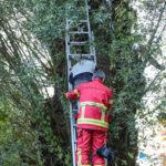Zijn vader probeerde hem nog te bereiken, maar de boom bleek lastig te beklimmen. Jessie had zich op eigen kracht behoorlijk hoog weten te werken, waardoor hulp van de brandweer nodig was. Met behulp van een ladder wist de brandweer de jongen uiteindelijk veilig naar beneden te halen.