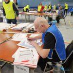 Winschoten – In de sporthal aan de Mr. D.U. Stikkerlaan is het Bureau Verkiezingen van de gemeente Oldambt sinds donderdagochtend druk bezig met de centrale hertelling van alle stembiljetten. Onder leiding van projectleider Hester Bijl en collega Tina van der Veen werken zo’n 80 vrijwilligers aan het sorteren en controleren van de stemmen, met bijzondere aandacht voor voorkeurstemmen.