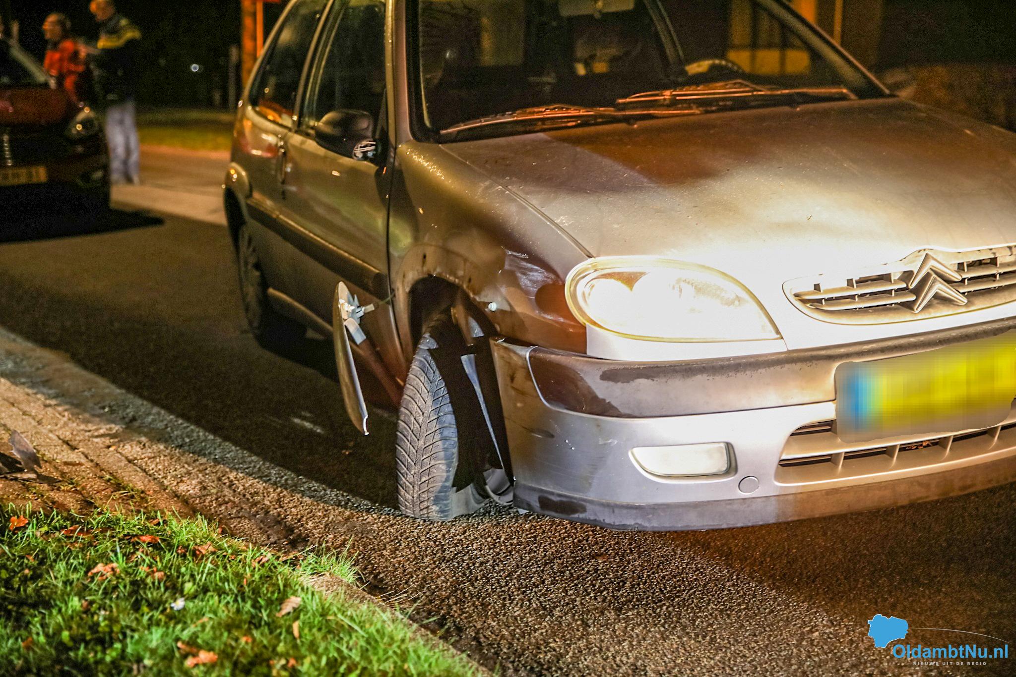 Door de klap brak het voorwiel van de rijdende auto af. De geparkeerde auto liep schade op aan de linkerachterzijde. De politie heeft het ongeval op papier gezet. Een ambulance kwam ter plaatse maar hoefde niet in actie te komen.