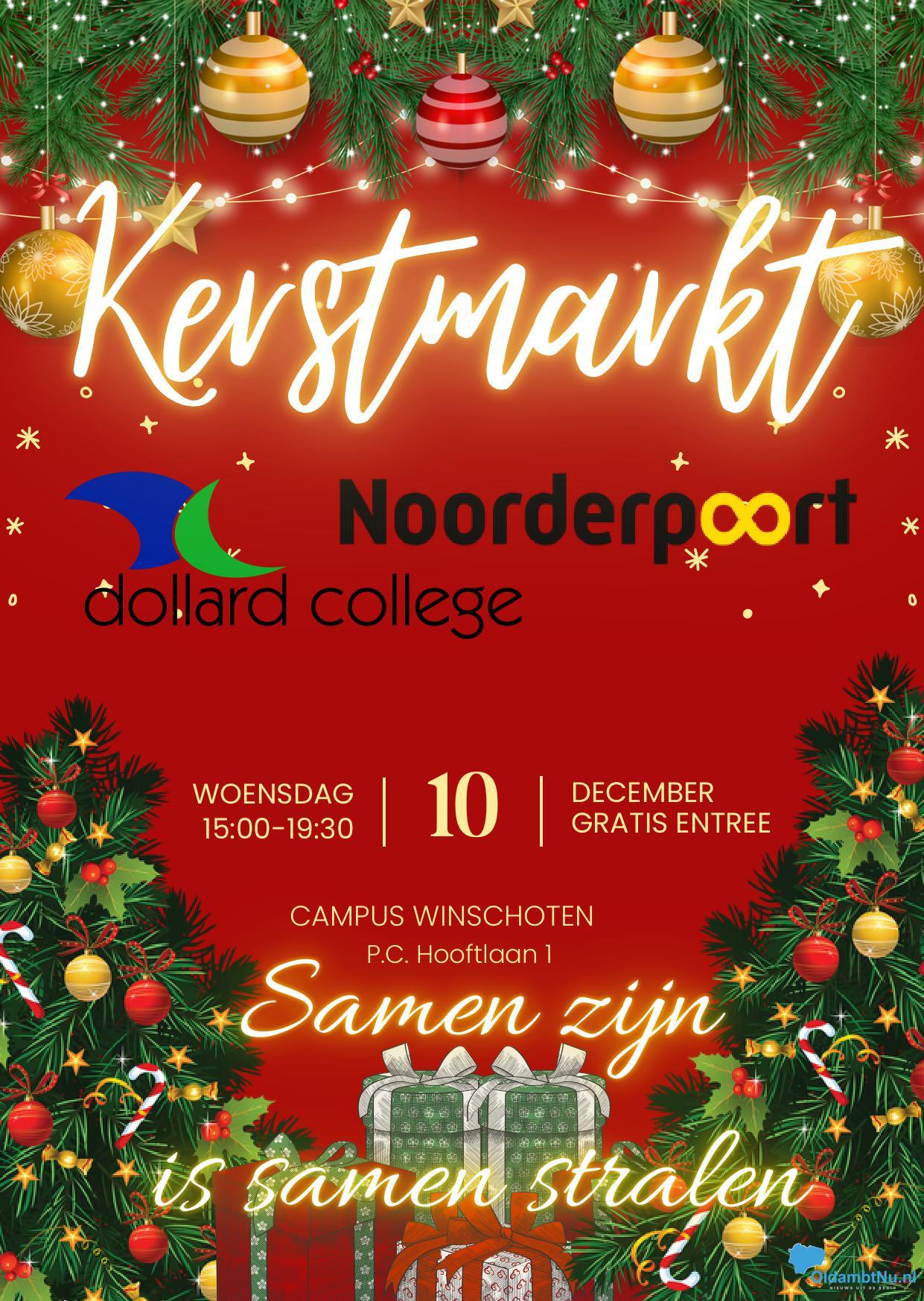 Winschoten – Op woensdag 10 december organiseren de scholen Noorderpoort en Dollard College een sfeervolle en toegankelijke kerstmarkt op de Campus in Winschoten. De kerstmarkt is een ontmoeting voor jong en oud.
