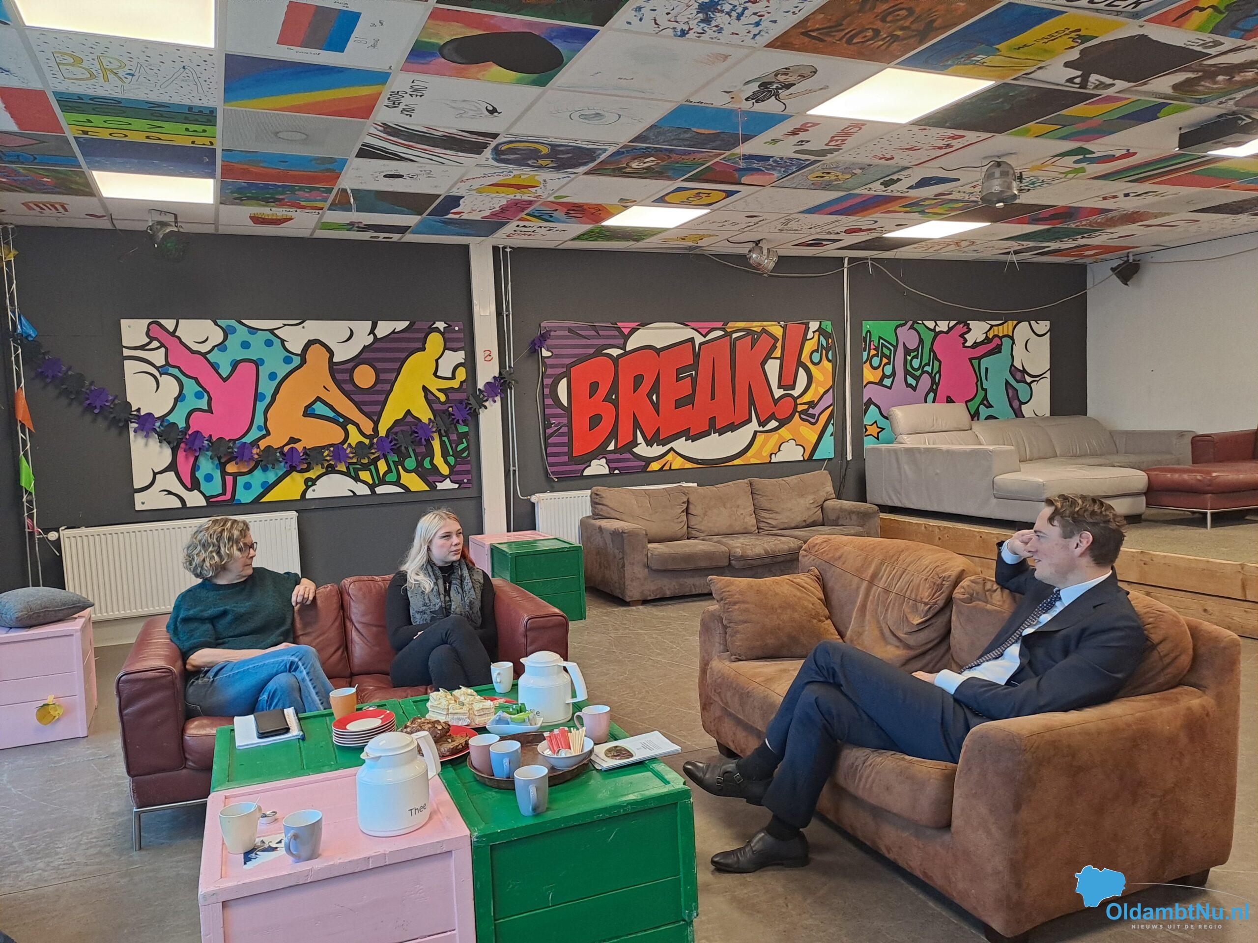Henk werd namens de sociaalwerkorganisaties ontvangen door Karin Eeken (deBasis Veendam, Sociaal Werk Oldambt en de Badde), Marcel van Leeuwen (Mensenwerk Hogeland), Freek Nauta (Welzijn Westerwolde), Maartje van de Grind en Ineke van Loo (jongeren- en buurtwerkers bij deBasis Veendam). Het gezelschap ging in gesprek over lokale initiatieven, verder bouwen op wat werkt en inzetten op de kracht van inwoners om samen vooruit te komen.
