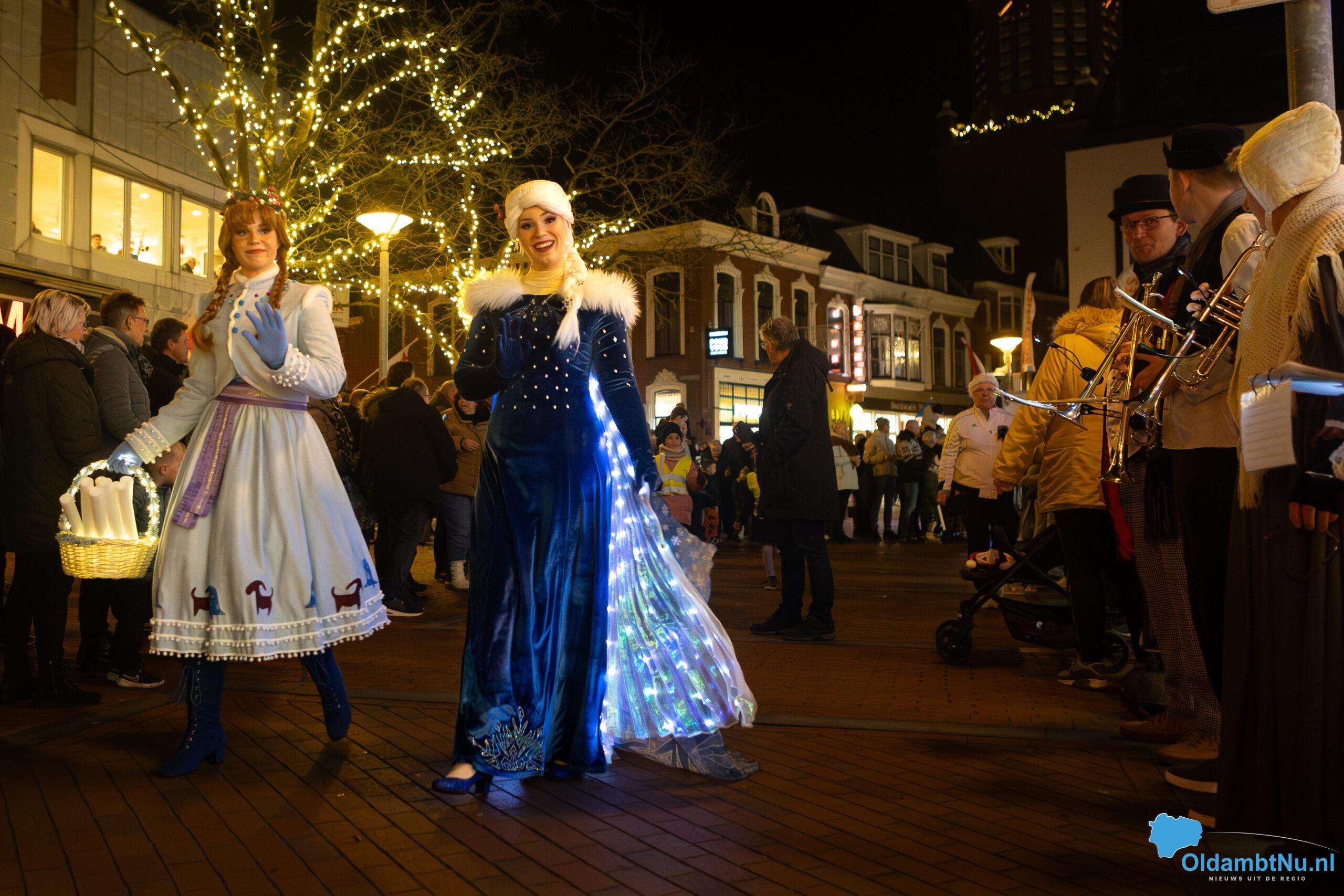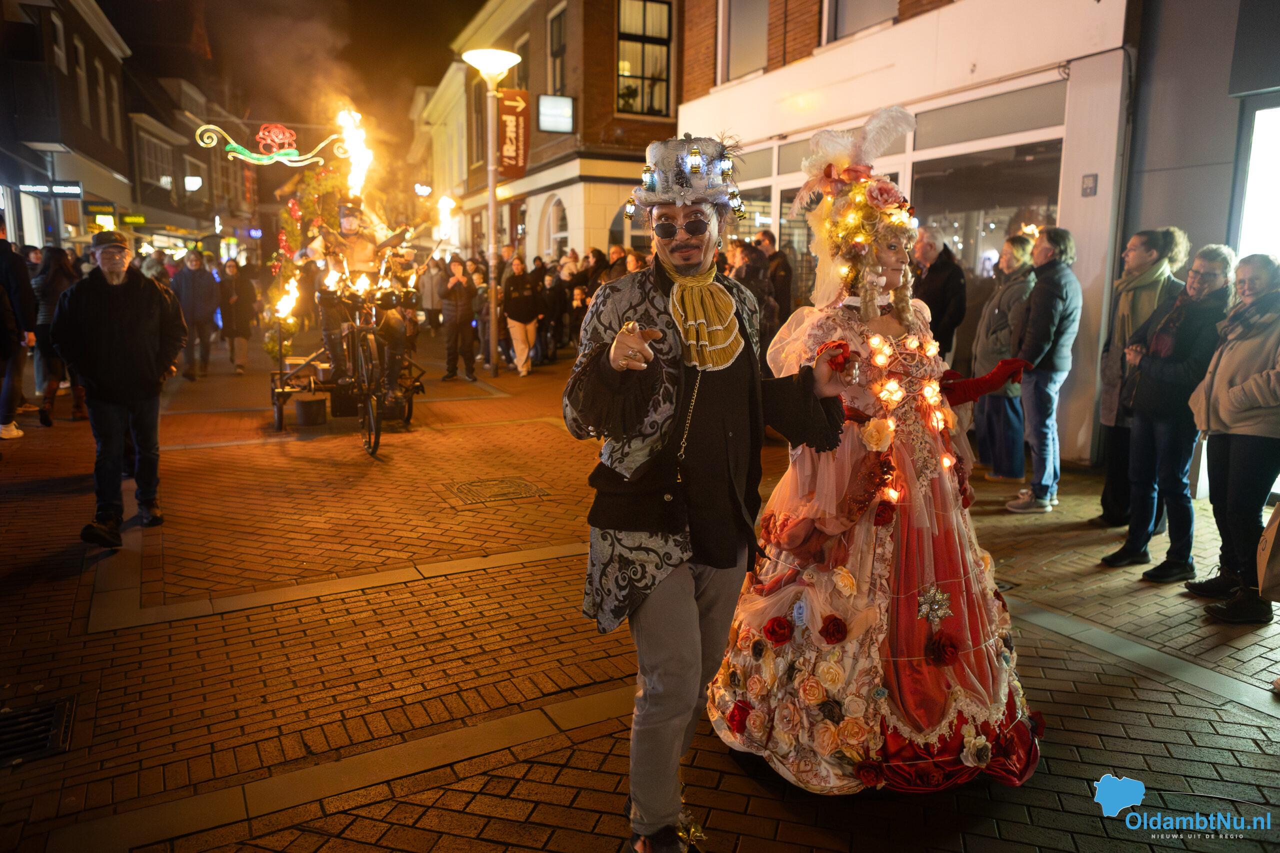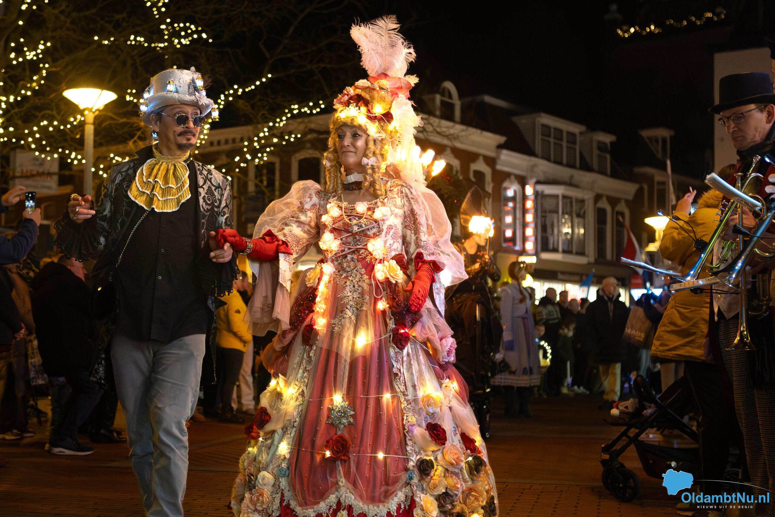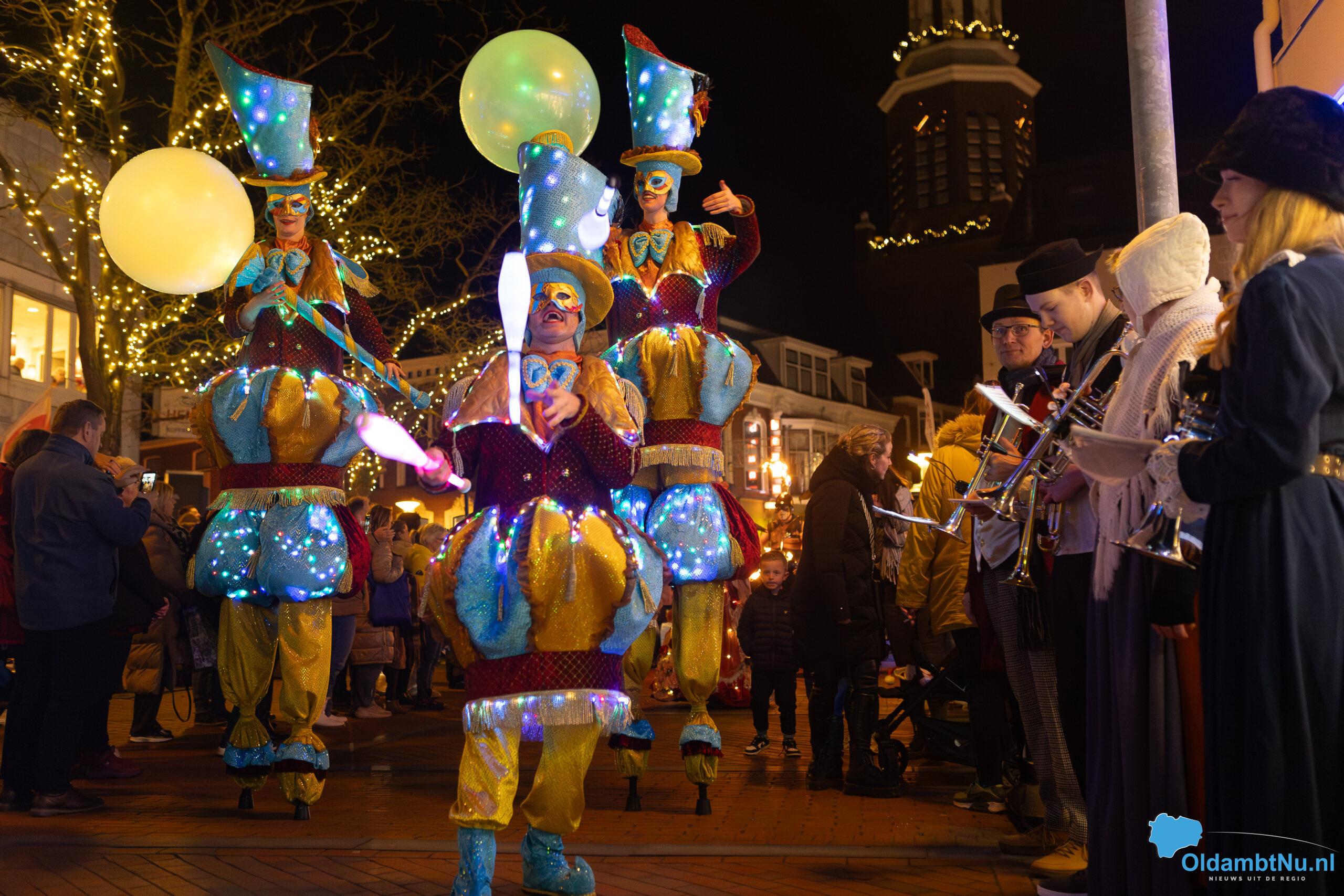 Opvallend was Circo di Strada met hun lichtjesparade ‘Lights up by Night’, maar ook de Rozenkoningin, een vlammende riksja, de rolschaatsclub met mooi verlichtte kostuums, de kerstman en een elf op een arrenslee getrokken door een prachtige braaf Fries paard, Anna en Elsa en muziek van De Klinkers getooid in Dickens Day kleding zorgden voor een sfeervolle avond.