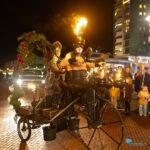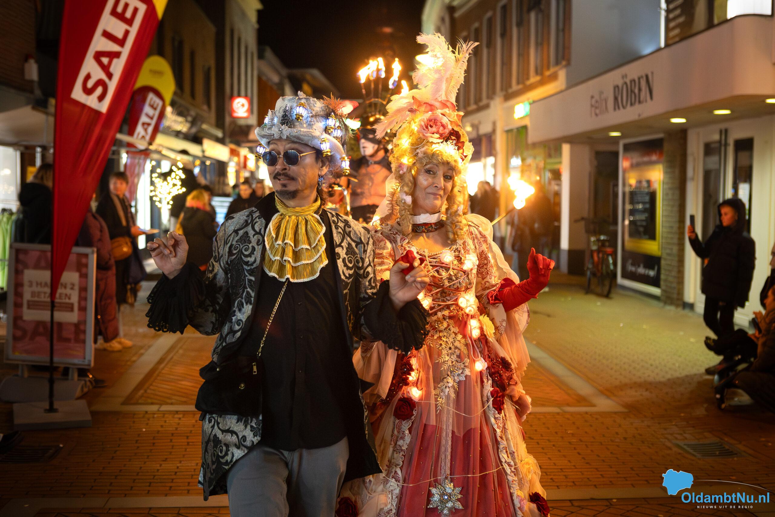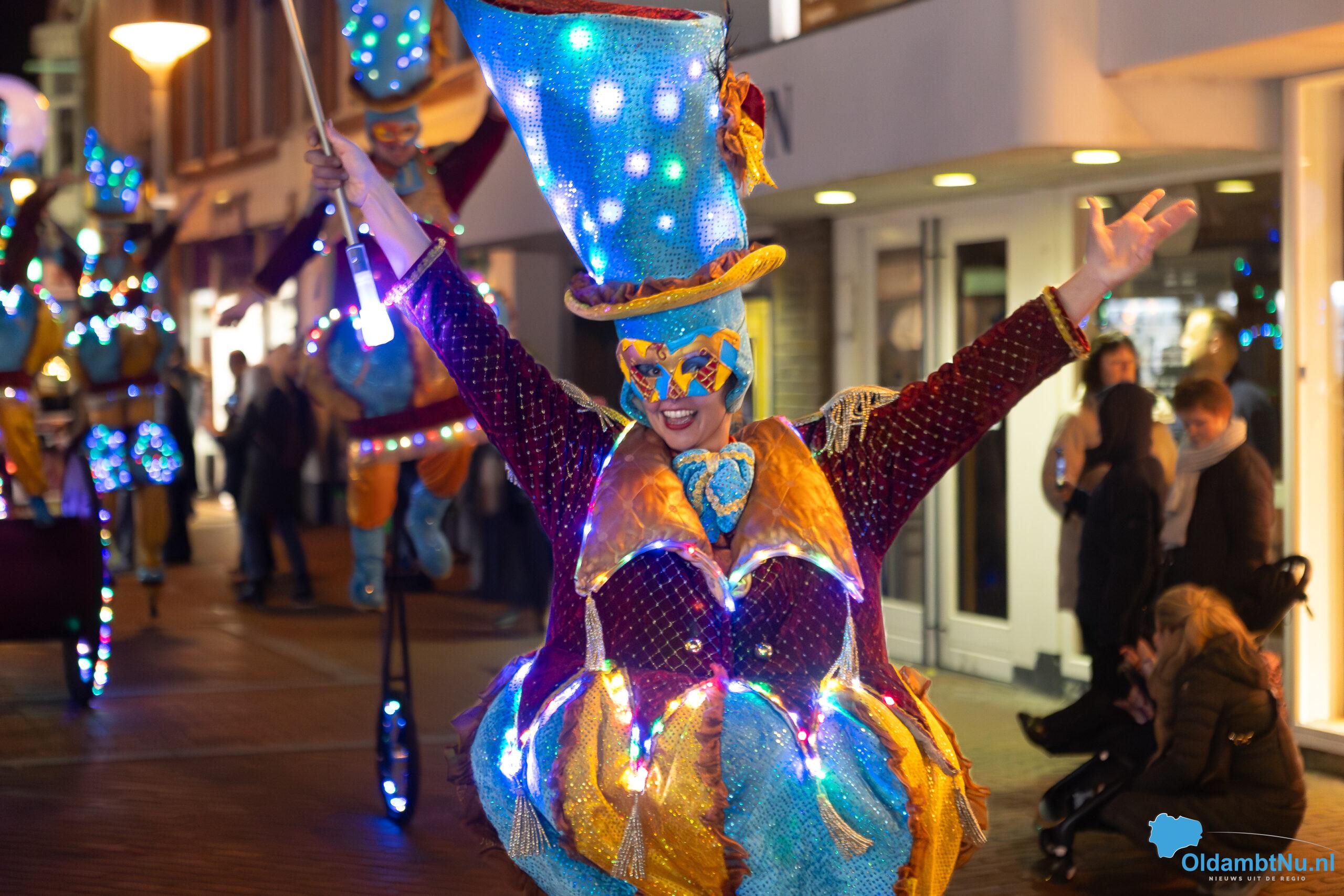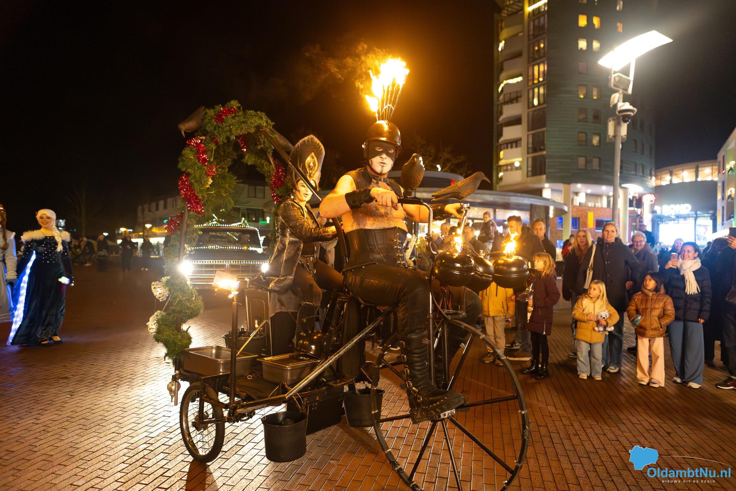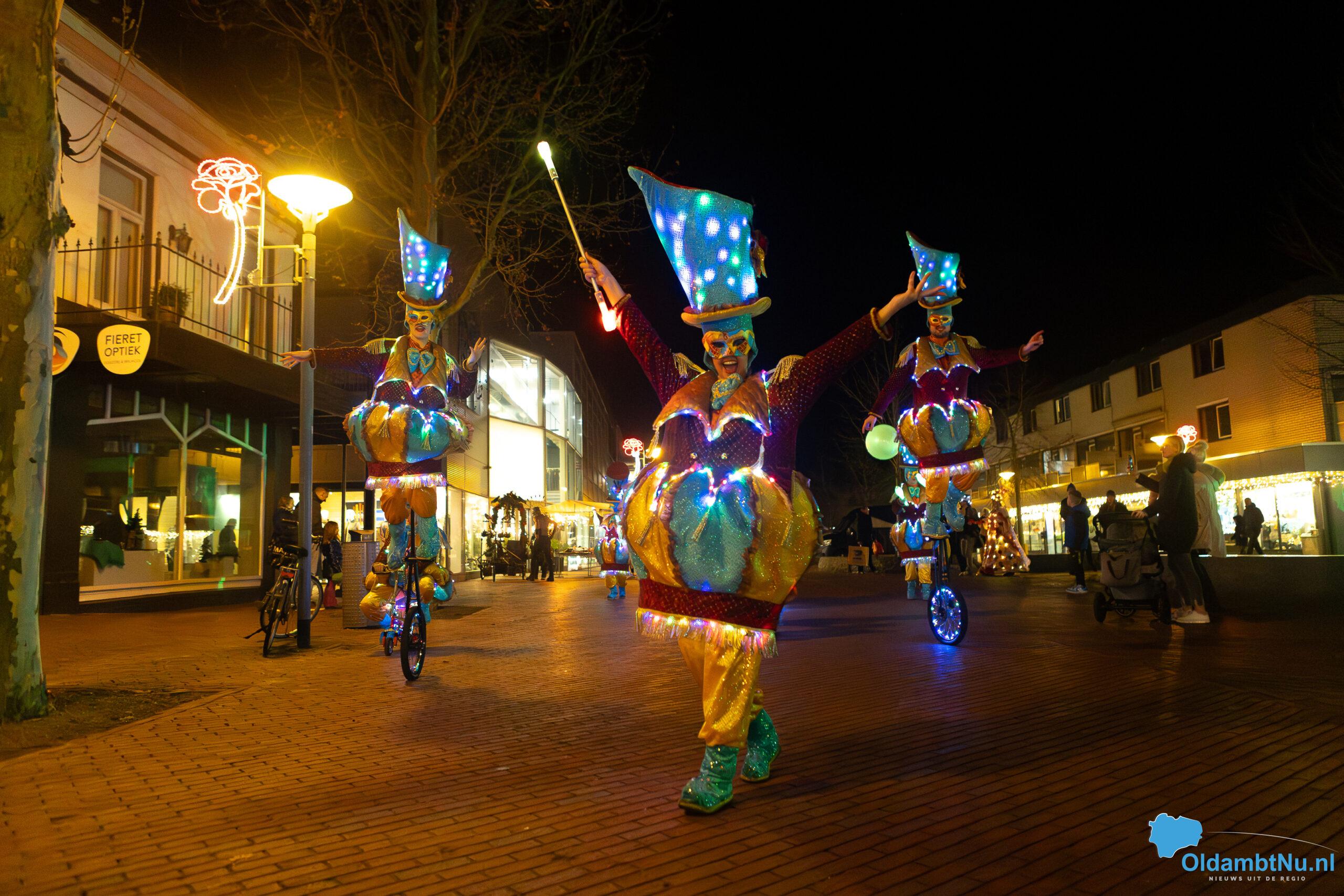 Opvallend was Circo di Strada met hun lichtjesparade ‘Lights up by Night’, maar ook de Rozenkoningin, een vlammende riksja, de rolschaatsclub met mooi verlichtte kostuums, de kerstman en een elf op een arrenslee getrokken door een prachtige braaf Fries paard, Anna en Elsa en muziek van De Klinkers getooid in Dickens Day kleding zorgden voor een sfeervolle avond.