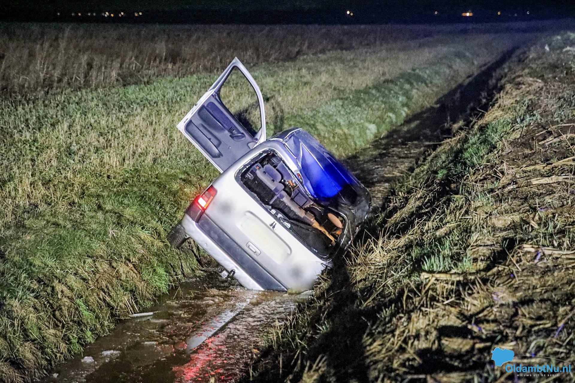 Auto glijdt van spekgladde klinkerweg in Nieuw Scheemda