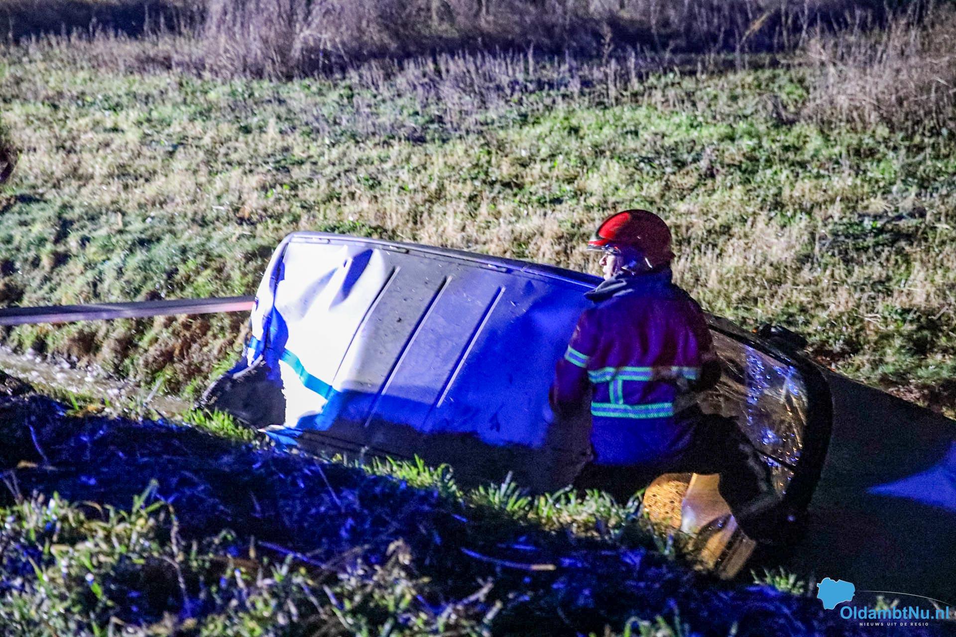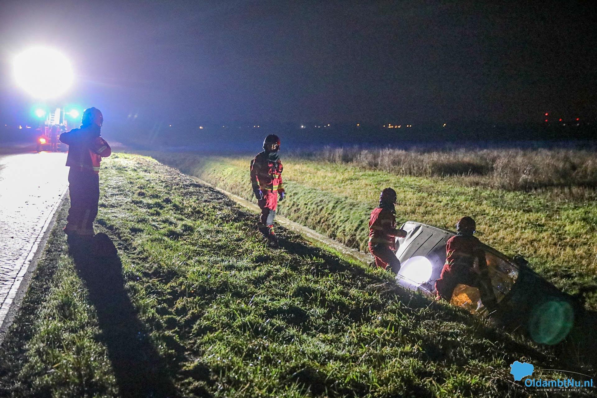 Het incident vond plaats op een spekgladde klinkerweg. Vermoedelijk verloor de bestuurster door de gladheid de controle over het voertuig, waarna de auto in een naastgelegen sloot terechtkwam.