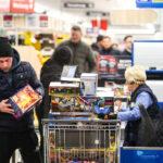 De eerste bezoekers hebben hun aankopen al gedaan. De winkelkarren zijn goed gevuld met vuurwerk, terwijl de drukte in de omgeving nog steeds toeneemt.