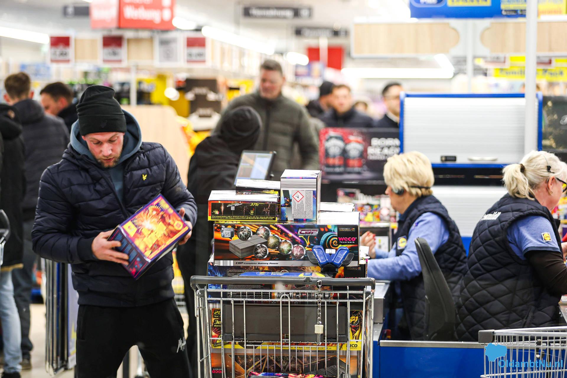 Bunde (D) – Bij de supermartken in Bunde, net over de grens bij Bad Nieuweschans, is het extreem druk door de verkoop van vuurwerk. Duizenden Nederlanders zijn naar Duitsland gekomen om massaal vuurwerk in te slaan.