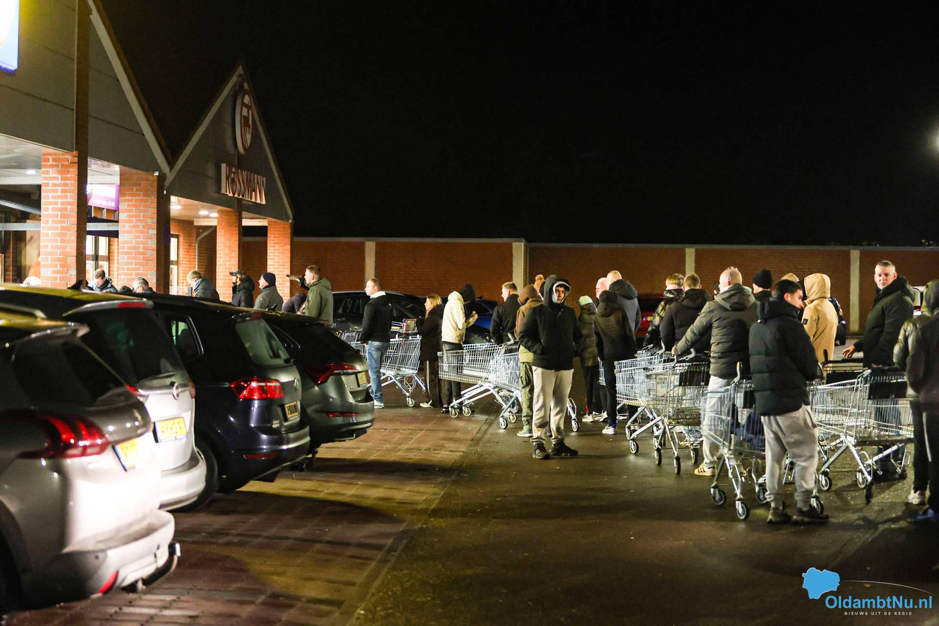 Buiten de winkel staat een wachtrij waar klanten meer dan een uur moeten wachten om naar binnen te kunnen. Het dorp Bunde loopt vast door het verkeer en ook op de snelweg richting de grens is er inmiddels sprake van kilometerslange file.
