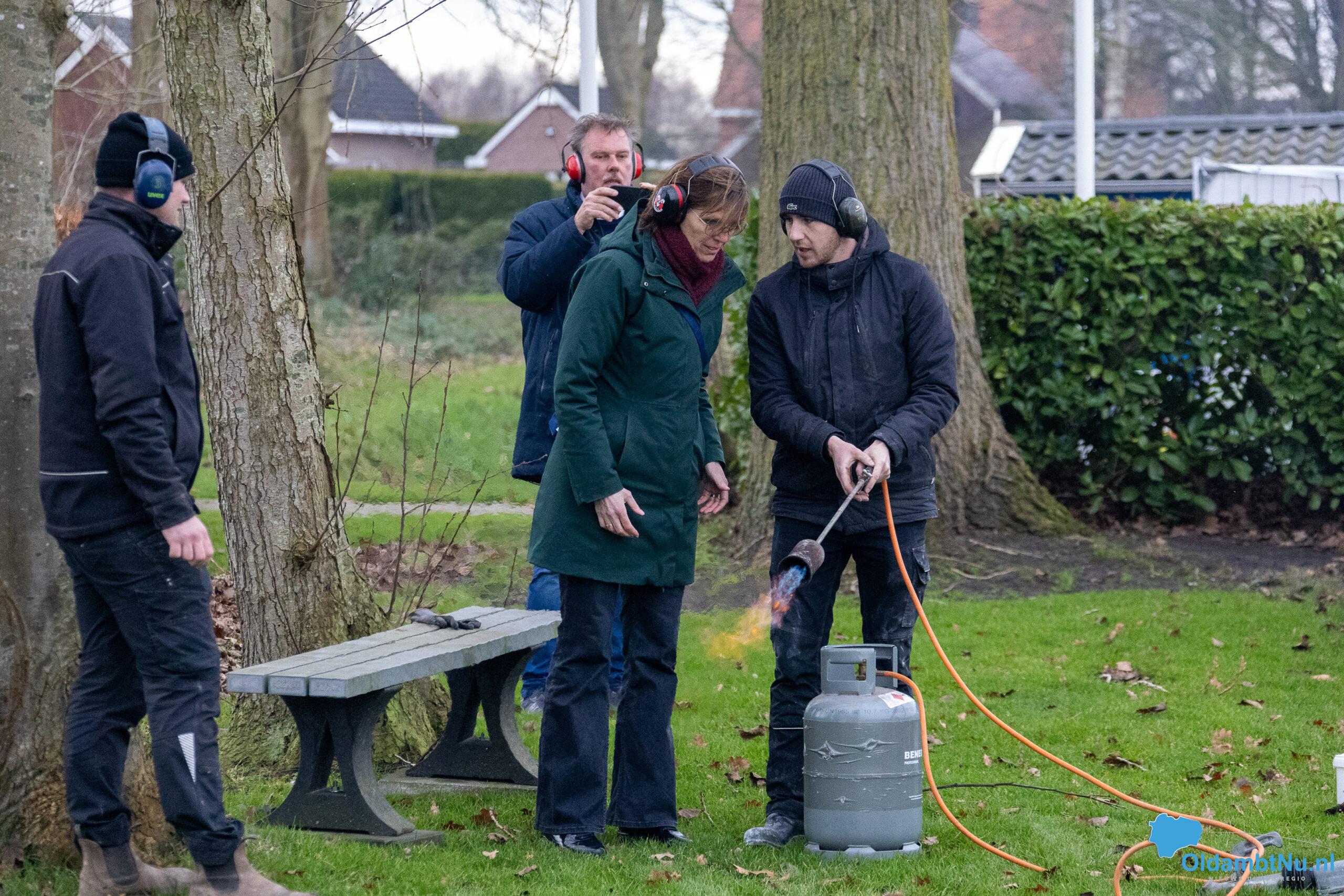 Tijdens een ronde langs de drie carbidlocaties bracht ook burgemeester Cora-Yfke Sikkema een bezoek, samen met locoburgemeester Gert Engelkens. De burgemeester sprak haar waardering uit voor de manier waarop het carbid schieten werd georganiseerd en beleefd.