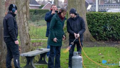 18.30 uur: Op verschillende locaties in de gemeente Oldambt is oudjaarsdag traditiegetrouw het carbid geschoten, zo ook in Oostwold. Hier bracht burgemeester Cora-Yfke Sikkema samen met locoburgemeester Gert Engelkens een bezoek.