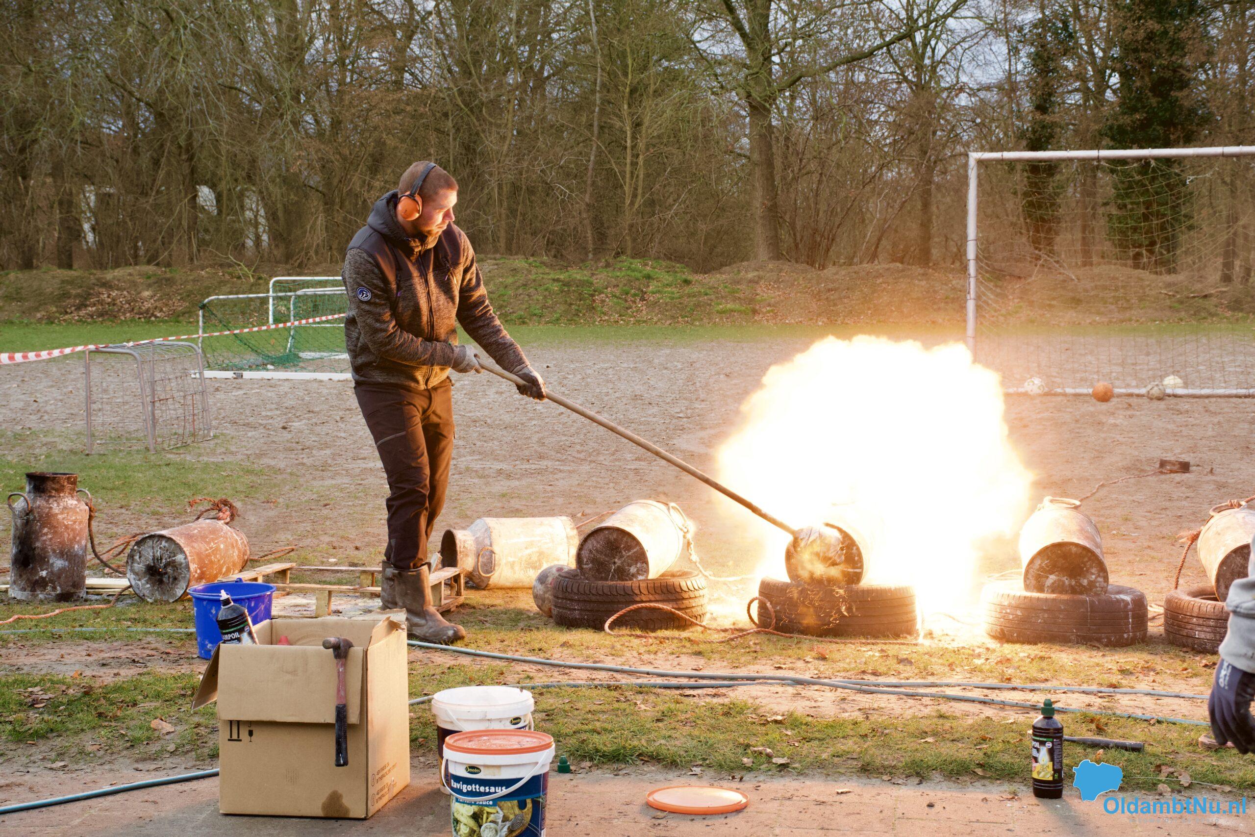 Onder toezicht en met inachtneming van de veiligheidsafspraken werden de melkbussen afgevuurd, wat zorgde voor de vertrouwde, luide knallen die bij het carbidschieten horen. Dankzij de inzet van vrijwilligers verliep de middag in een gemoedelijke en gezellige sfeer, waarbij samen werd stilgestaan bij het afsluiten van het oude jaar.