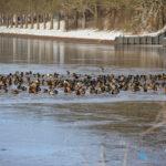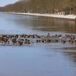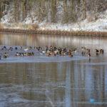 Winschoterdiep bij Scheemda dichtgevroren: eenden zoeken laatste wak