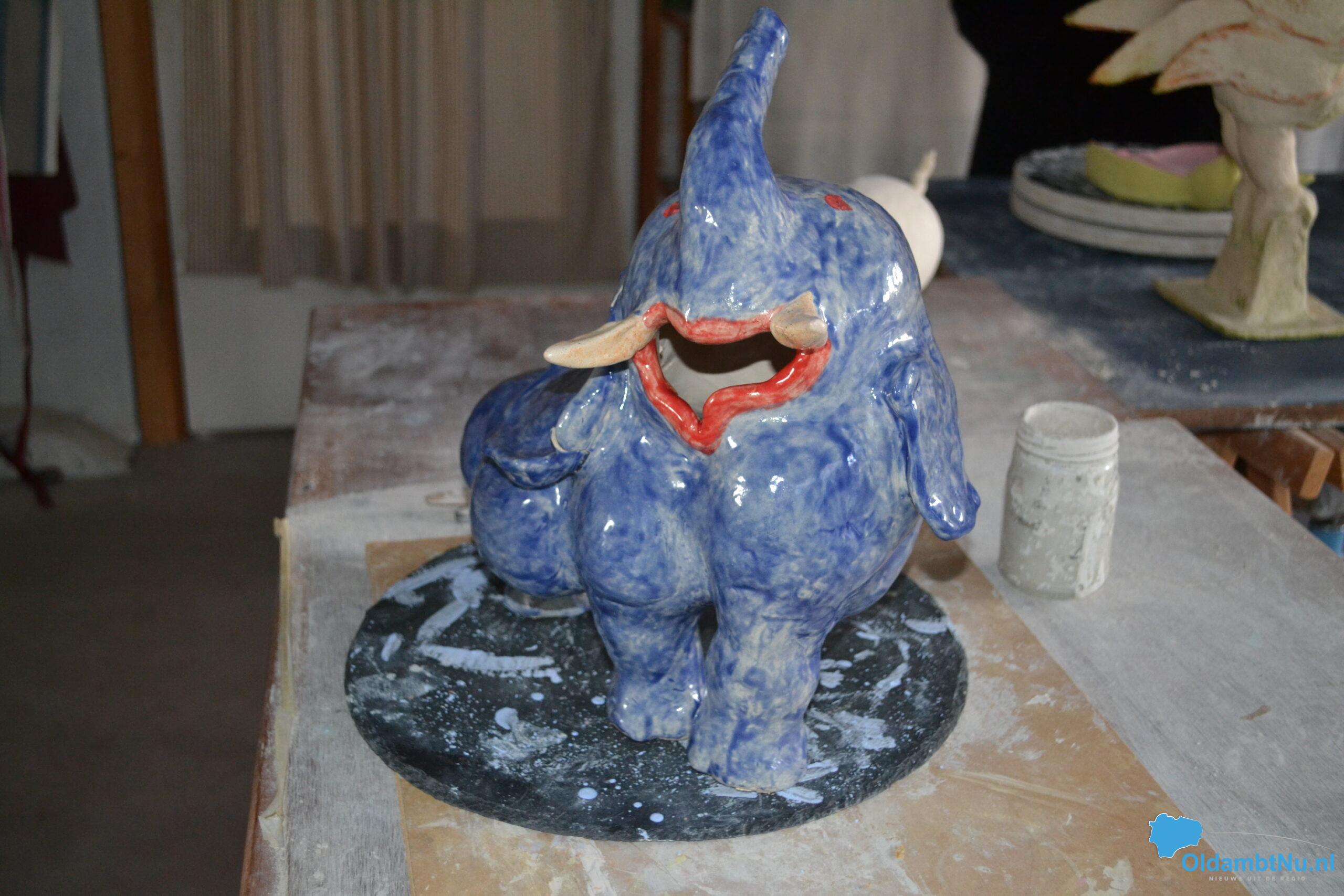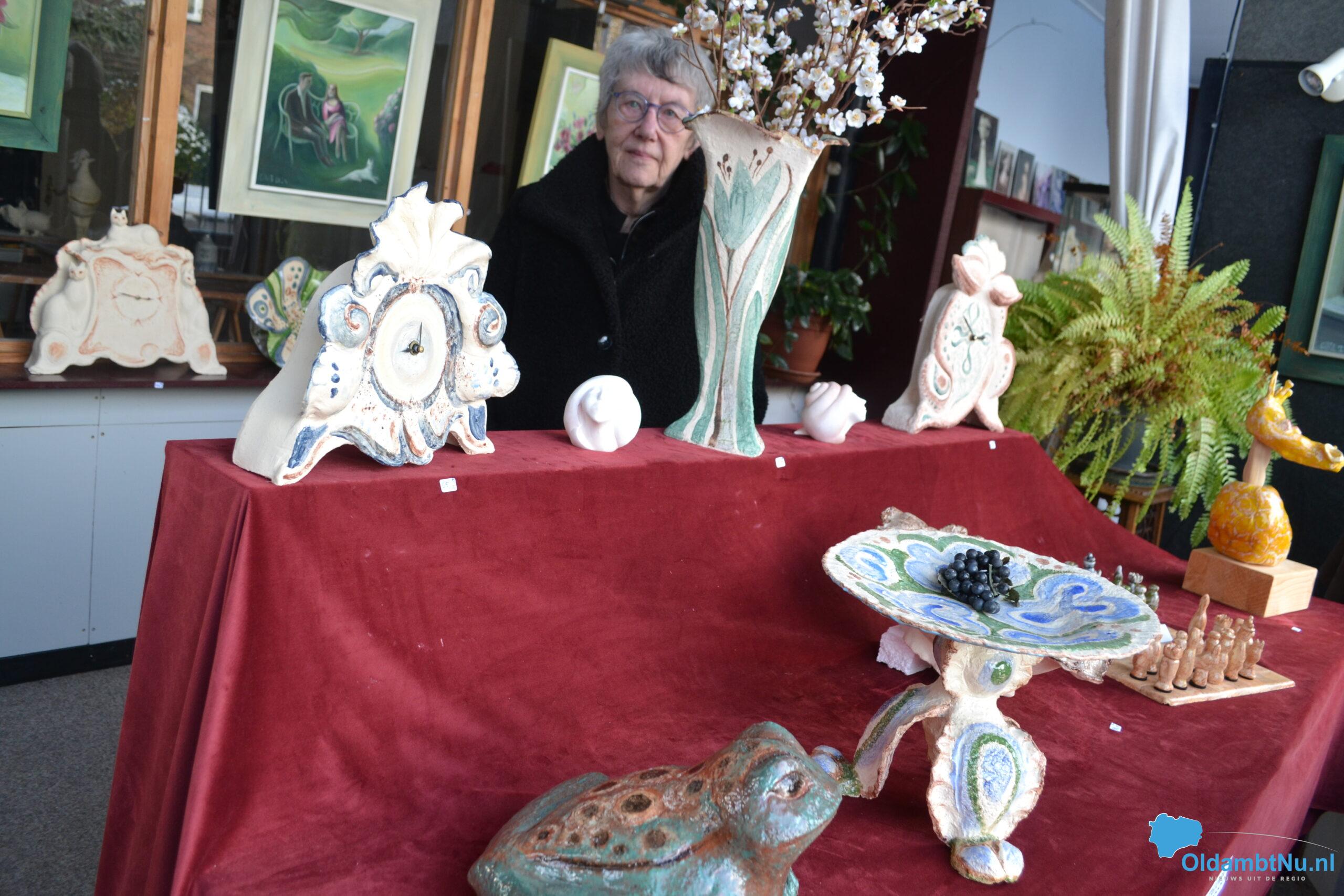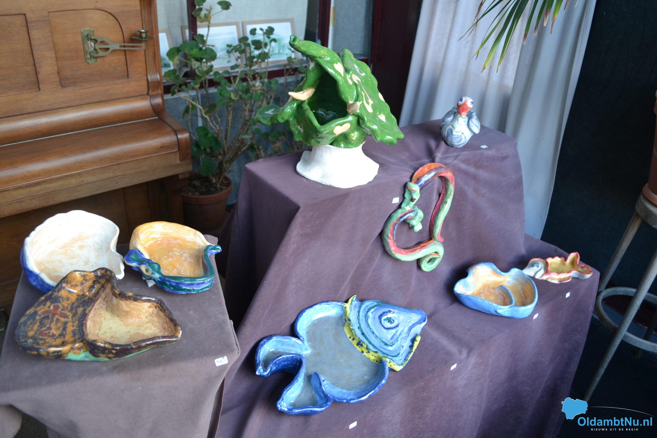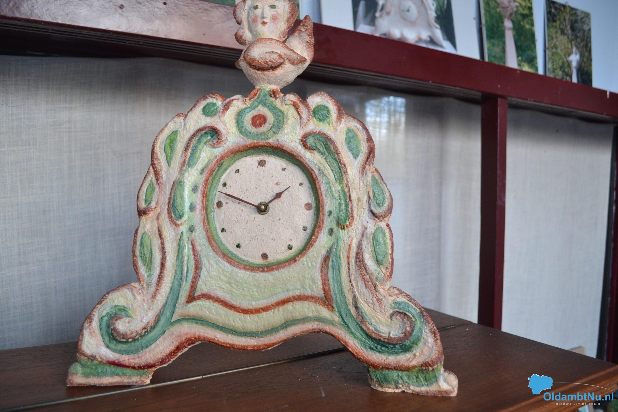 “Ja, ineens kreeg ik het idee om kleur aan de beelden, schalen, vazen en klokken toe te voegen. Ik vond altijd dat charmotteklei zo neutraal mogelijk moest blijven, maar ben nu toch van dat idee afgestapt. Het zijn geen schreeuwen kleuren die ik er nu in aanbreng, maar toch, word ik er wel blijer van”, aldus Cilia.