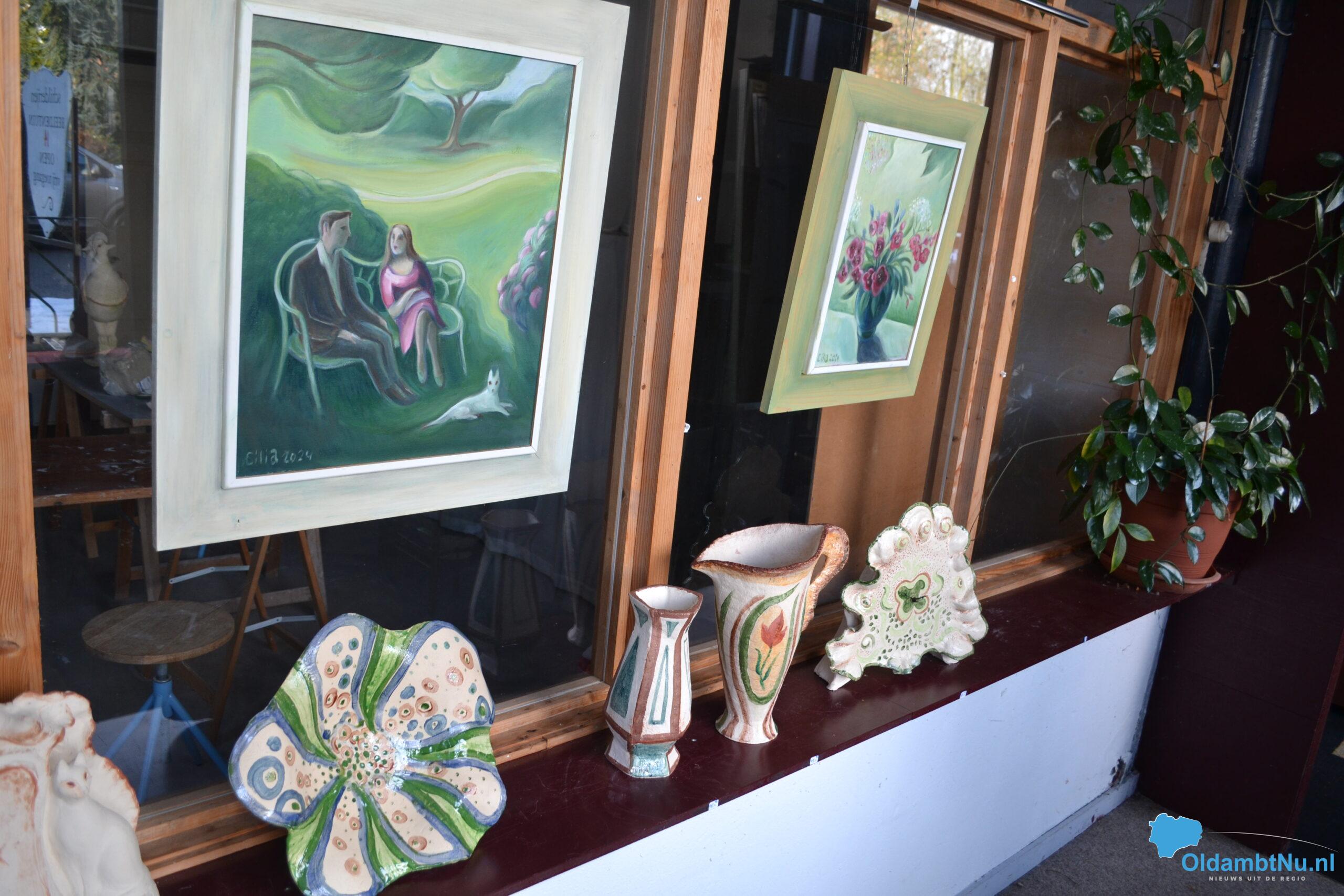 Ze heeft nu al een groot aantal beelden etc. tentoongesteld in de etalage van haar woonhuis in Bad Nieuweschans. Natuurlijk is Cilia ook blijven schilderen. Enkele nieuwe werken met bloemen zijn ook al te bewonderen. Het is net of ze wat waziger zijn geworden, er een filter over heen is gegooid, maar wel inspirerend.