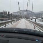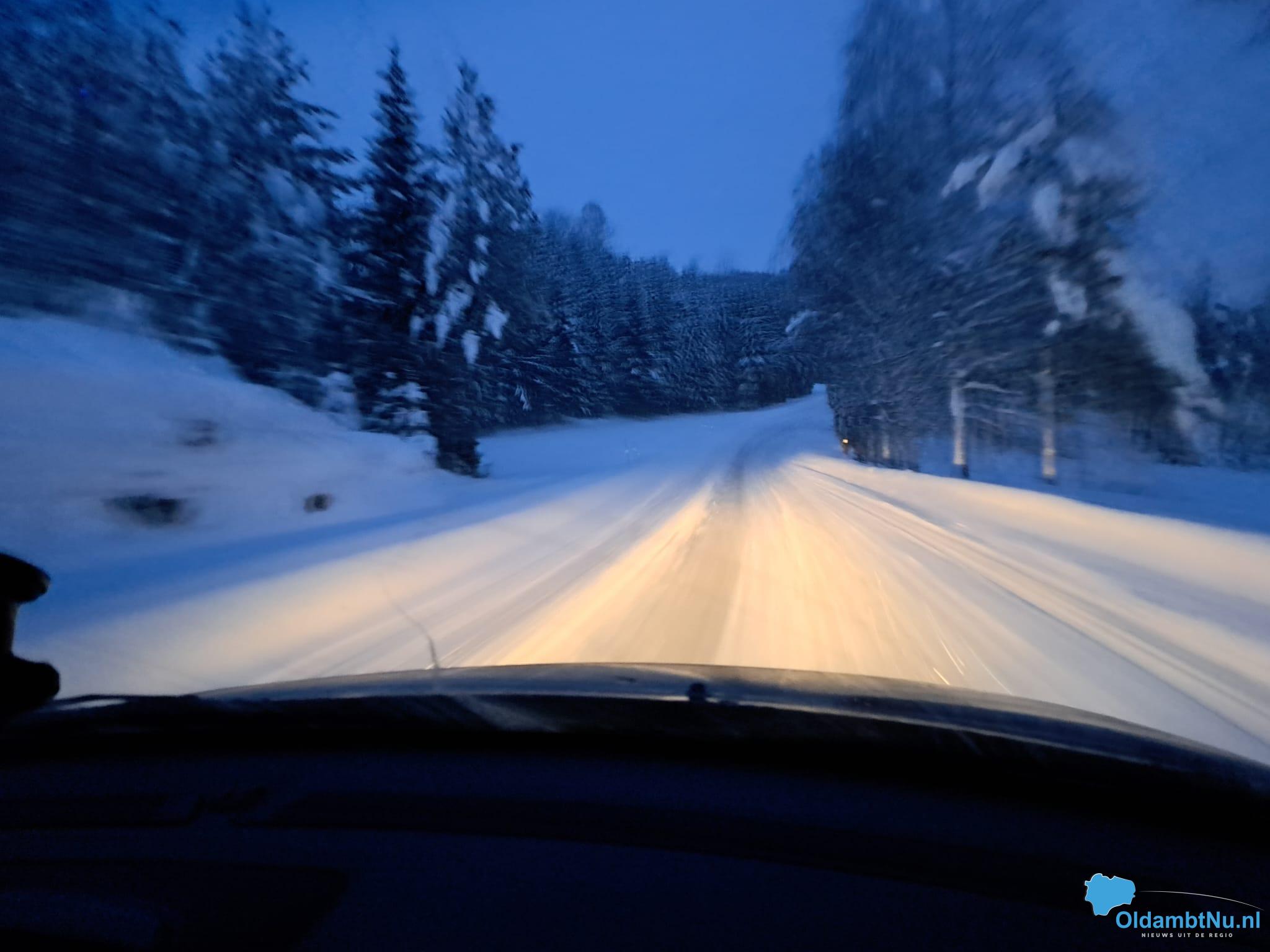 De eerste 250 km waren voornamelijk over snelwegen. Hier zat weinig uitdaging in. Na ongeveer 250 km gereden te hebben kwamen we aan bij een veerpont. Na een halfuur varen kwamen we in een heel andere setting terecht. Geen snelwegen meer. Wel mooie binnendoor wegen in een geweldige winter wonderwereld. Wegen met genoeg uitdagingen, spanning en avontuur. Het enige wat jammer was, was dat door de vertraging van de boot we na een paar uur rijden in het donker reden. Hierdoor veel van het natuurschoon en de mooie witte wereld niet kunnen zien.