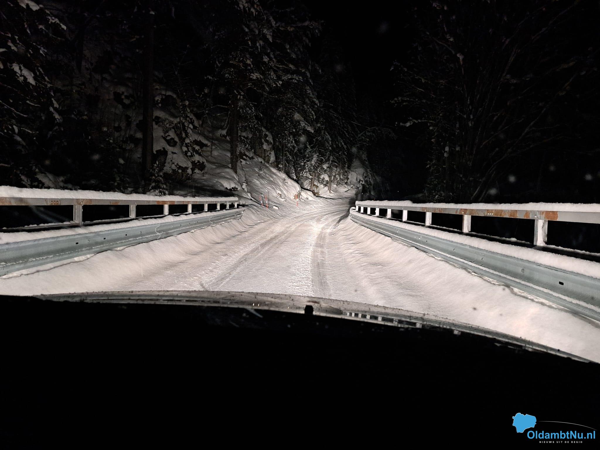 Morgen waarschijnlijk weer een mooie route. Alleen al om het feit dat het echt de hele dag al sneeuwt en we morgen dus weer in een echte winterse wereld rijden.
