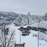 Zelf zijn we ook aan het glijden geweest. Gelukkig bleef bij een 180–er waarbij we omgekeerd terecht kwamen en dus op de weg bleven. Dus gewoon weer keren en weer door. Dat het hierbij bleef was natuurlijk mede te danken aan goede winterbanden die Hemmes nog gemonteerd had voordat we vertrokken.