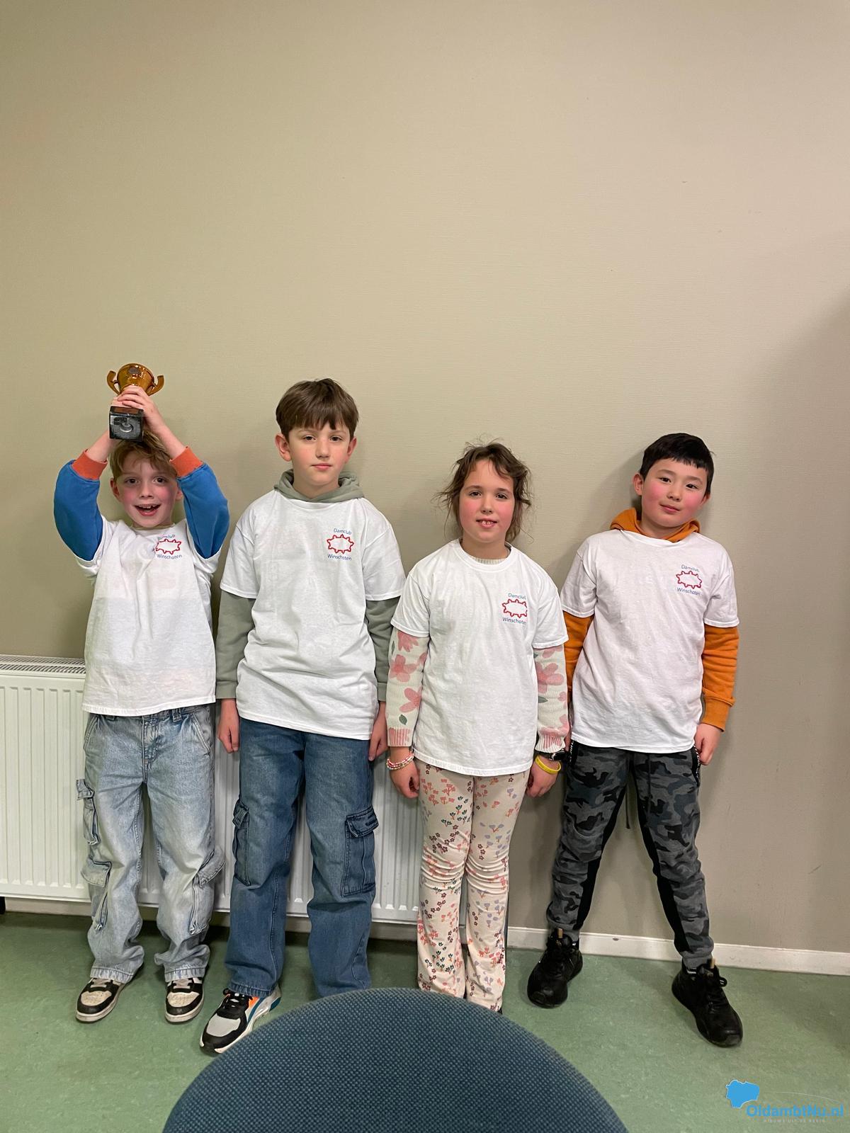 Een grote delegatie van Damclub Winschoten vertrok zaterdagmiddag met 4 jeugdleden naar West Drenthe om weer de nodige wedstrijdervaring op te doen bij jeugdwedstrijden. Dat waren Thijs (8 jaar), Ryan (8 jaar), Hannah (10 jaar) en Pavlo (10 Jaar). Pavlo in groep 3 en Ryan in groep 4 vielen met een 4e plaats net buiten de prijzen. De nummer 1 t/m 3 kregen namelijk een beker uitgereikt. Hannah en Thijs kwamen uit in groep 7 waar Hannah beslag legde op de 7e plaats en Thijs uitstekend derde werd. Thijs mocht zelfs een barrage spelen om de 2e plaats met Elohim Jansen uit Hoogeveen. Hierbij moest Thijs de eer laten aan Elohim en behaalde een uitstekende 3e plaats. Alle vier spelers uit Oost-Groningen kwamen sowieso tot goede partijen.