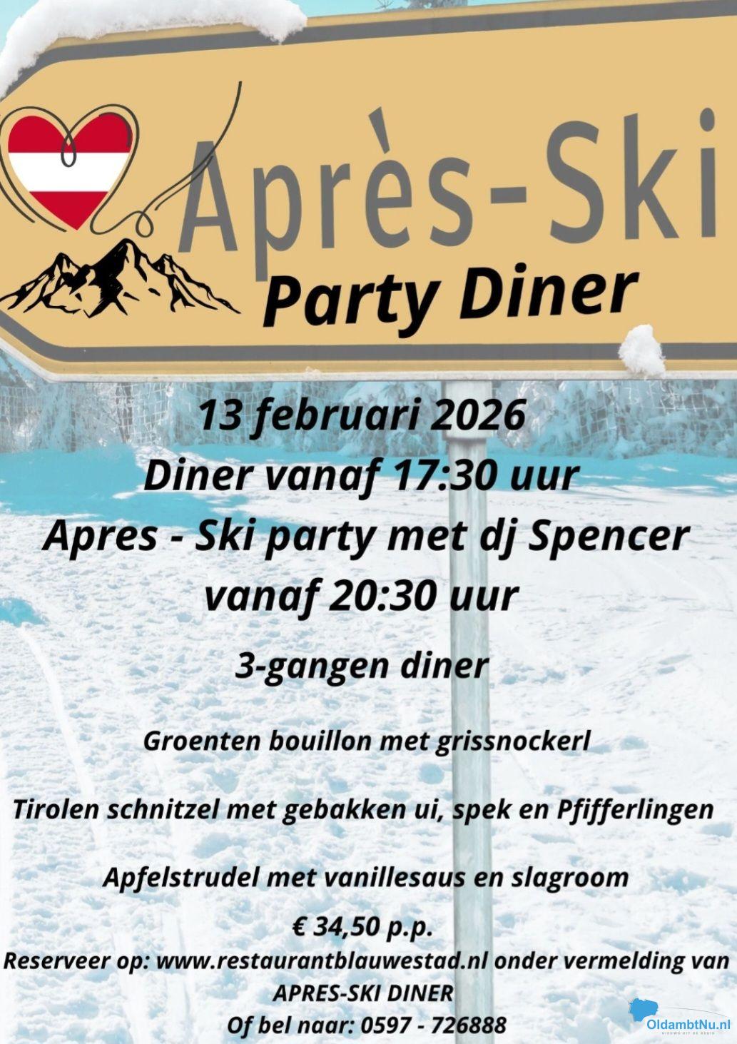 Op vrijdag 13 februari verandert Restaurant Blauwestad vanaf 20.30 uur in een winters feestdecor tijdens de Apres-ski party. Met DJ Spencer achter de draaitafels belooft het een avond te worden vol feestelijke apres-ski muziek, maar ook andere bekende hits komen voorbij, waaronder 80’s, 90’ss en dance classics. Er is dus muziek voor ieder wat wils. De entree is gratis, waardoor iedereen welkom is om het weekend feestelijk te starten.