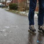 Scheemda – In Scheemda hebben jongeren woensdag gebruikgemaakt van het ijs op straat. Met de schaatsen onder de voeten werden de eerste rondjes gemaakt, midden in de woonwijken.