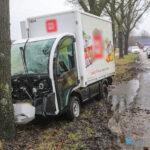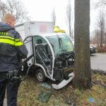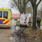 Een boodschappenbezorgauto is door nog onbekende oorzaak tegen een boom aangereden. Politie en ambulance kwamen met spoed ter plaatse om hulp te verlenen.