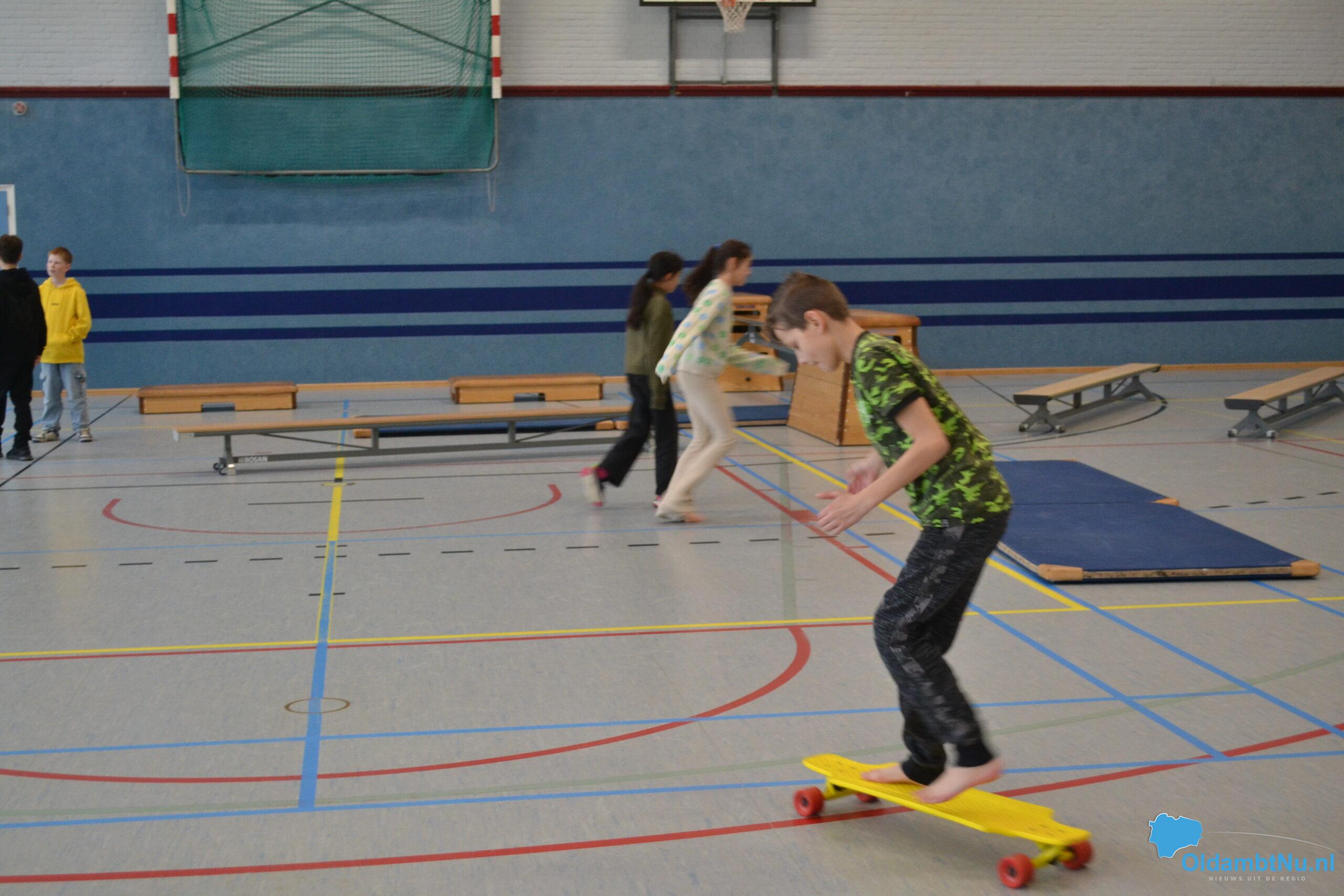 “Wij hadden ook BMX’en meegenomen, maar die mogen wij in de sporthal niet gebruiken, want die laten te veel strepen op de vloer achter. Urban sports is een verzamelnaam voor uiteenlopende sport- en beweegactiviteiten die hun oorsprong vinden op straat en worden beoefend in de stedelijke, openbare ruimte”, zegt Rolf.