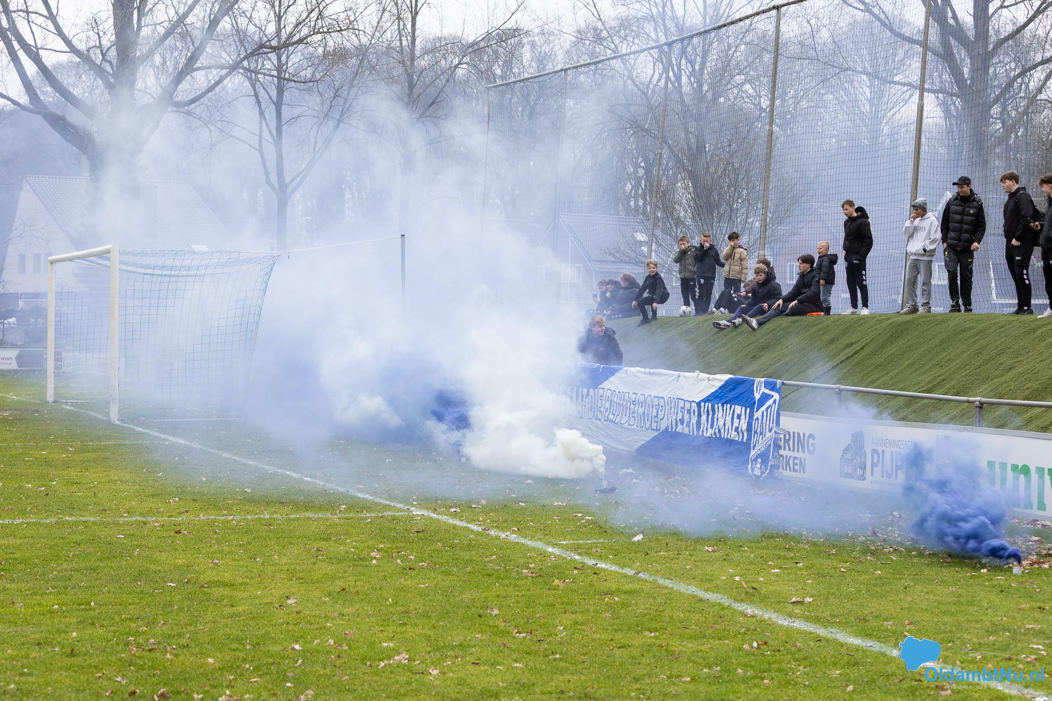 De opkomst van de spelers werd extra bijzonder door sfeeracties van de Bato-aanhang. Langs het veld hingen spandoeken en bij de entree van de teams kleurde witte en blauwe rook het sportpark. Dat zorgde voor een fanatieke en mooie sfeer voorafgaand aan de aftrap.