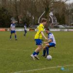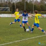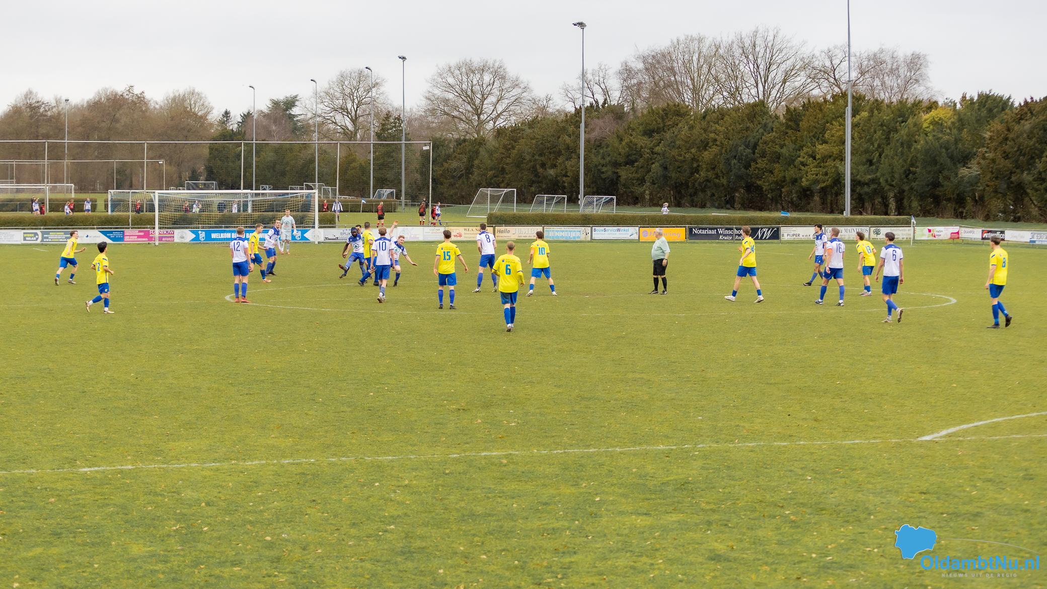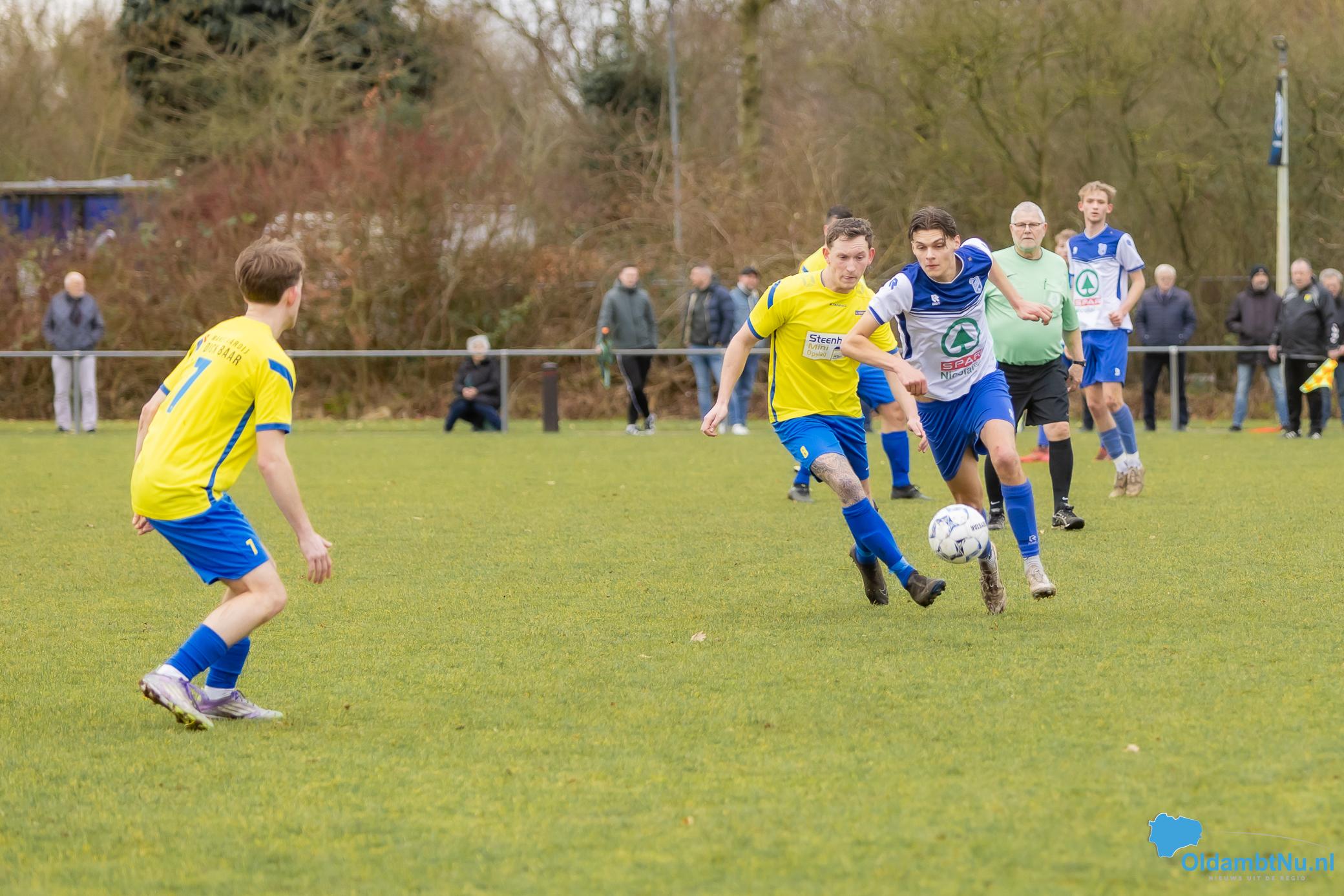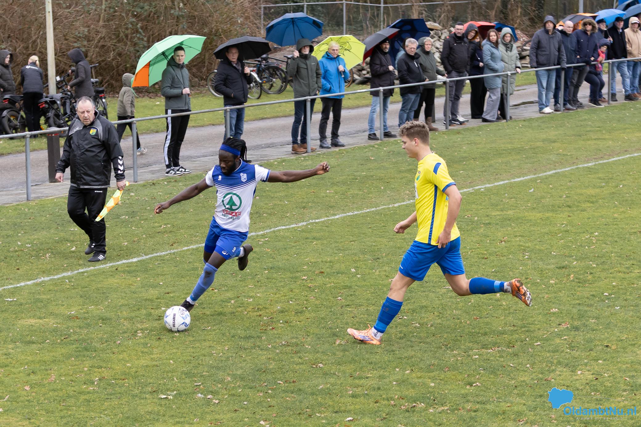 In de eerste helft maakten beide ploegen veel fouten en echte kansen waren schaars. Na bijna een half uur was Kyran Staats dicht bij de openingstreffer, maar zijn schot ging net naast. Even later volgden nog twee kopballen van Bato, maar doelman Dusseljee redde knap. Met 0-0 gingen beide teams rusten.