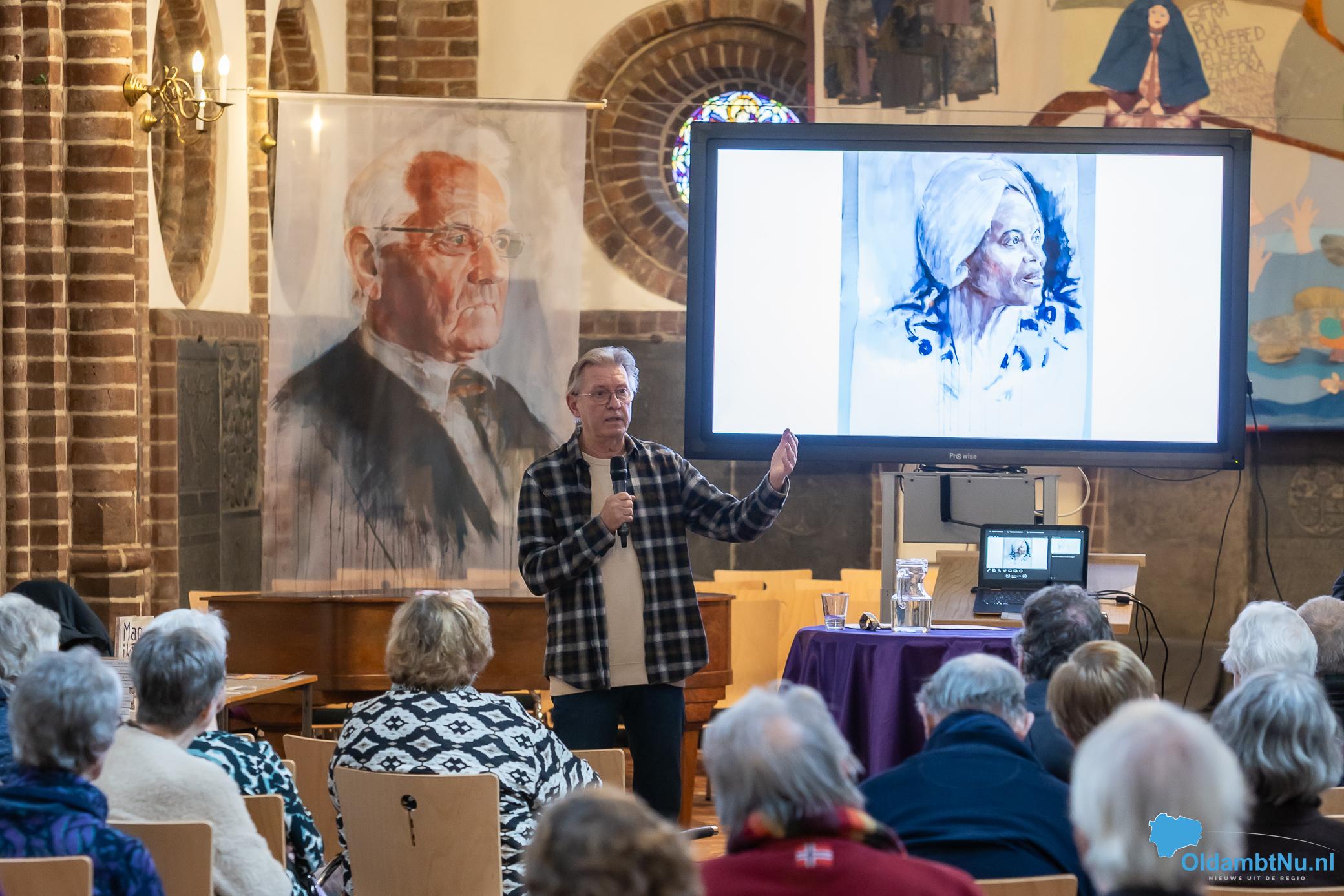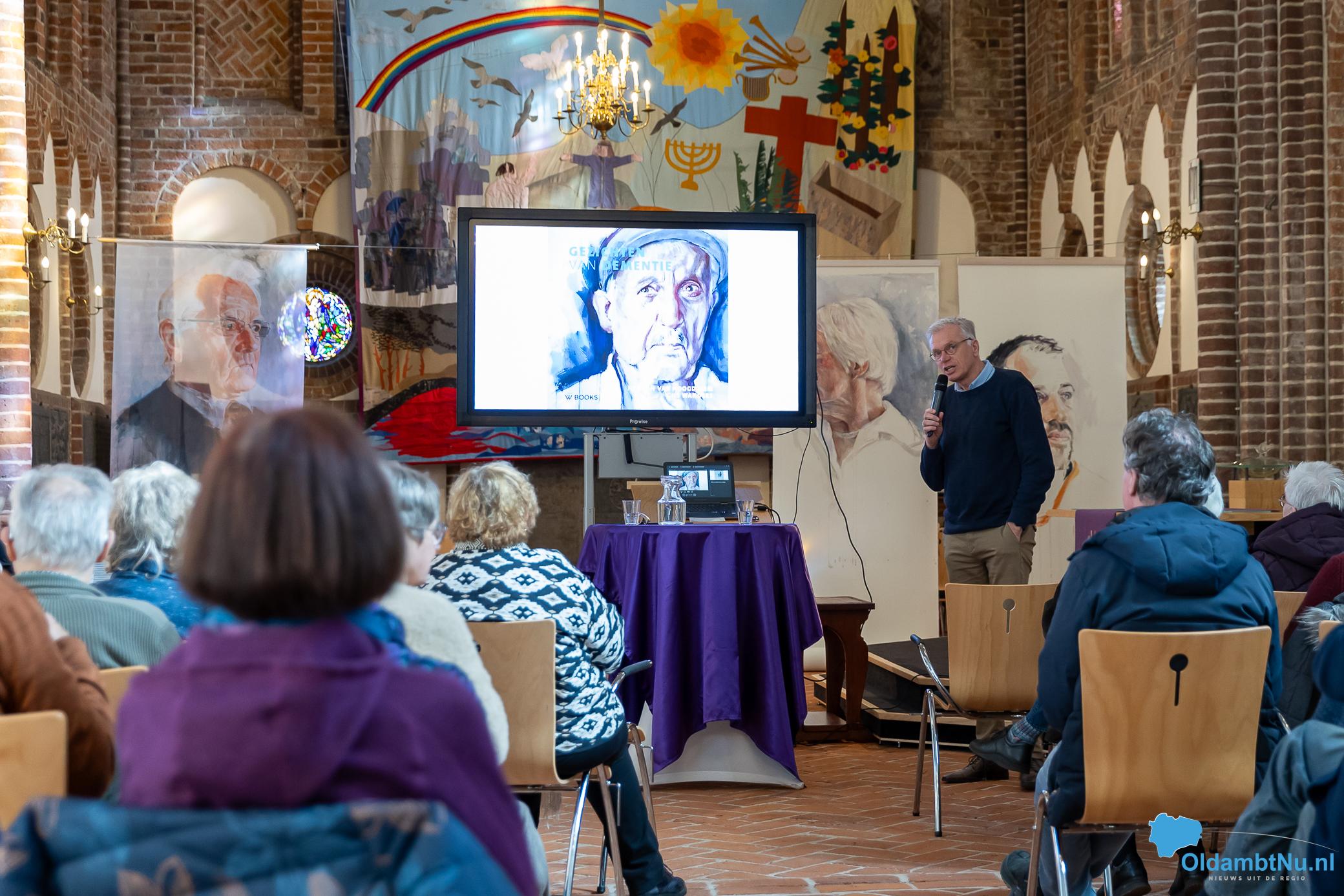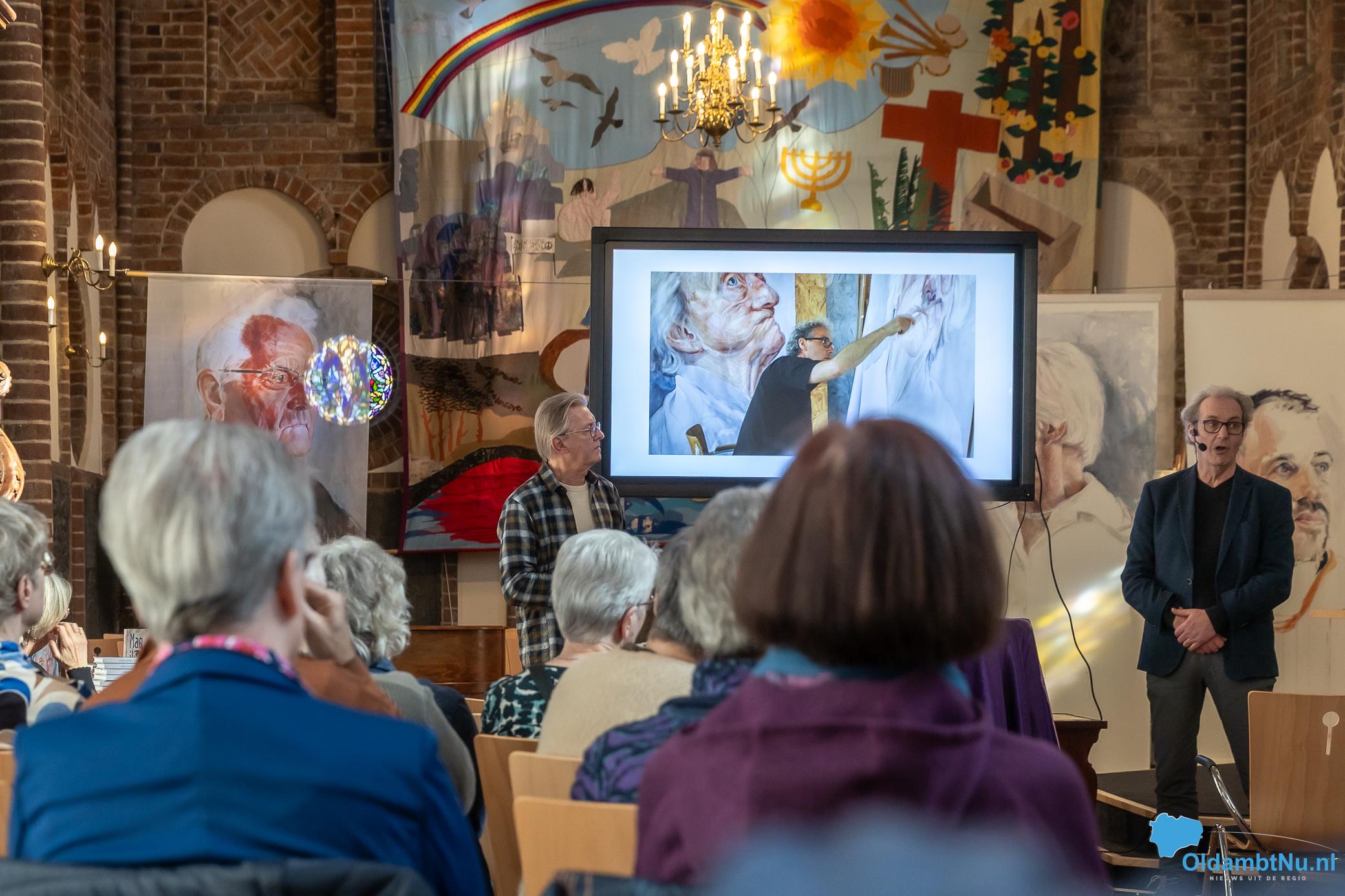 Zondagmiddag werd er in de Marktpleinkerk in Winschoten getoond wat er gebeurt tussen de geschilderde hoofdpersonen en hun gefilmde naasten: het verdriet, de wanhoop, de onthechting, de berusting, de ontroering. De beelden maken veel los: mensen ervaren herkenning en daarmee erkenning, delen emoties en gaan met elkaar in gesprek. Zo willen de beide makers een bijdrage leveren aan een dementievriendelijker samenleving.