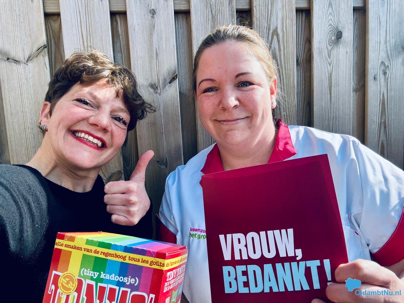 Namens GroenLinks-PvdA bracht kandidate Roelien Rietveldt een attentie naar verschillende organisaties die betrokken zijn bij de eerste 1000 dagen van een kind dat geboren wordt in onze gemeente. Roelien Rietveldt overhandigt namens GroenLinks-PvdA een blijk van waardering aan kraamverzorgster Agnes.
