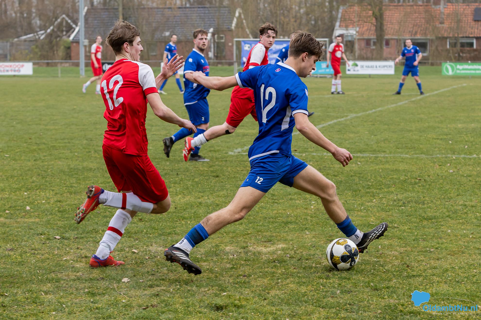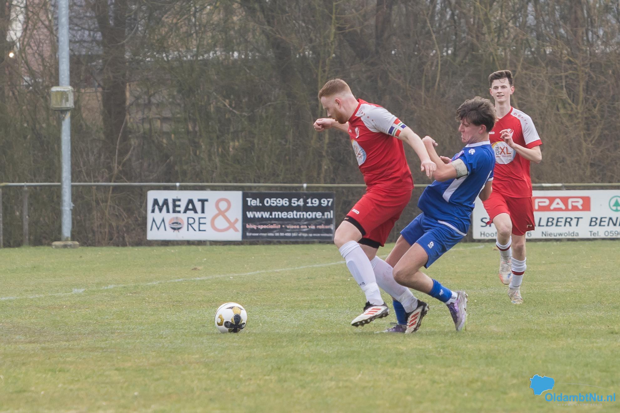 Met de derbyzege houdt Nieuwolda drie belangrijke punten op sportpark De Boskamp.
