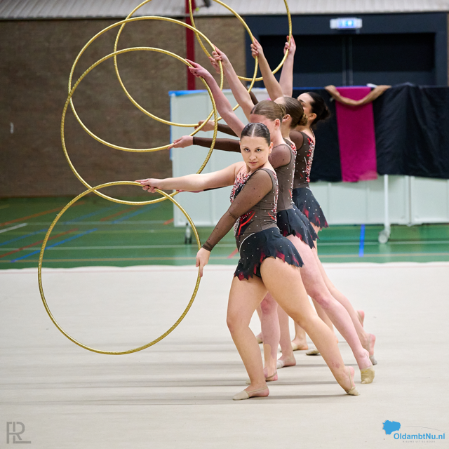 In een groot deelnemersveld gingen de senioren 1 en 2 beginnen met de baloefening. Dit resulteerde uiteindelijk in een 4e en 6e plaats. Ook voor de oefening met hoepel gingen de Bato-meiden goed. Een zilveren medaille voor de senioren 1 groep en ook weer een goede positie voor de senioren 2. Beide teams hebben goede zaken gedaan voor doorstroming naar Ahoy.