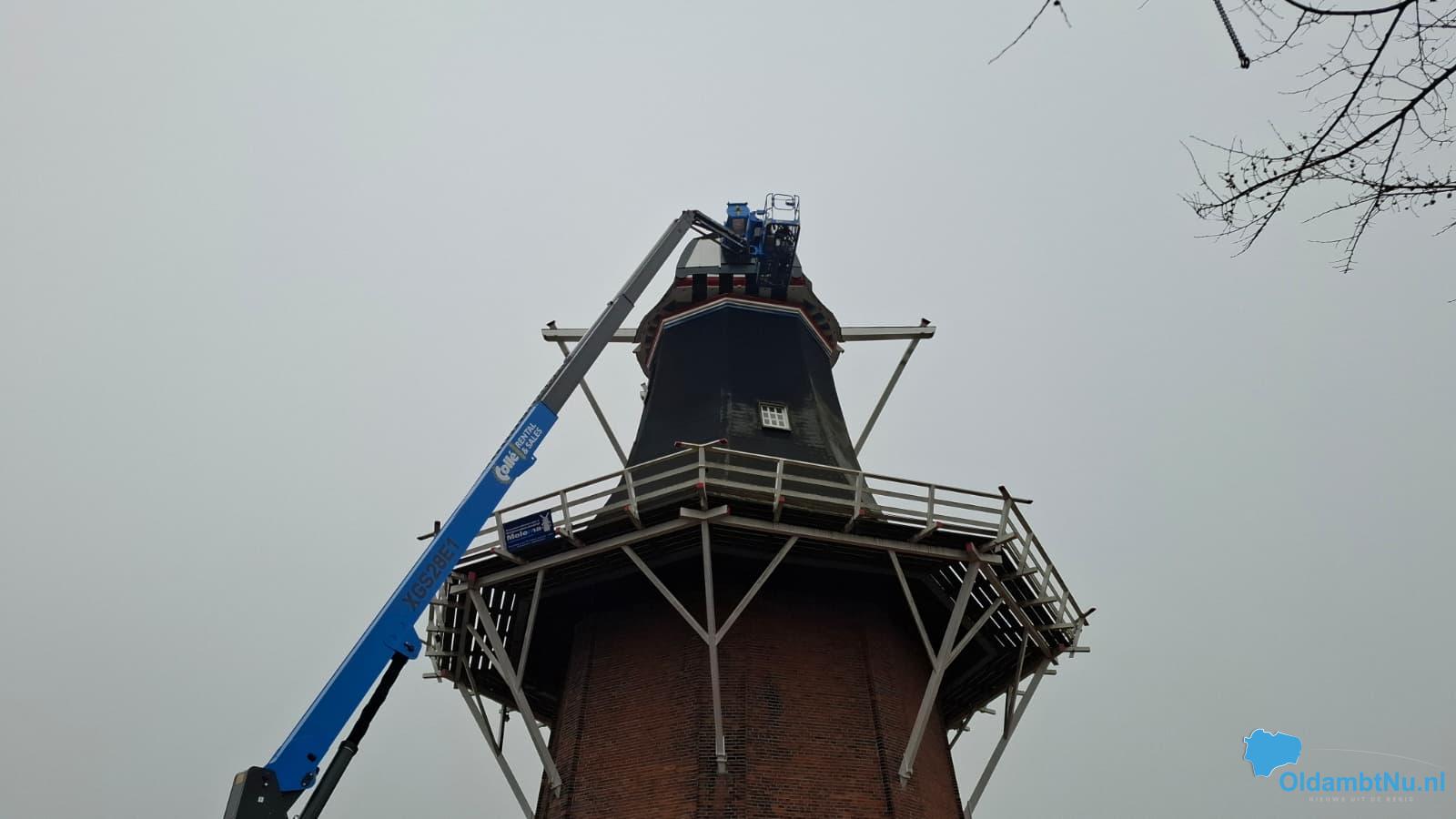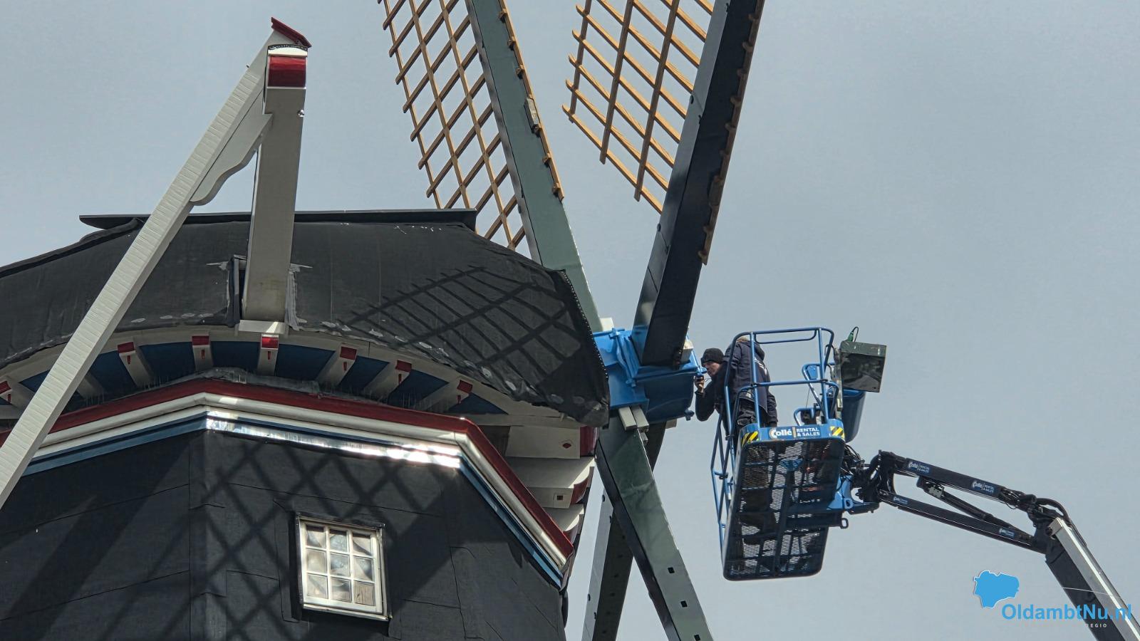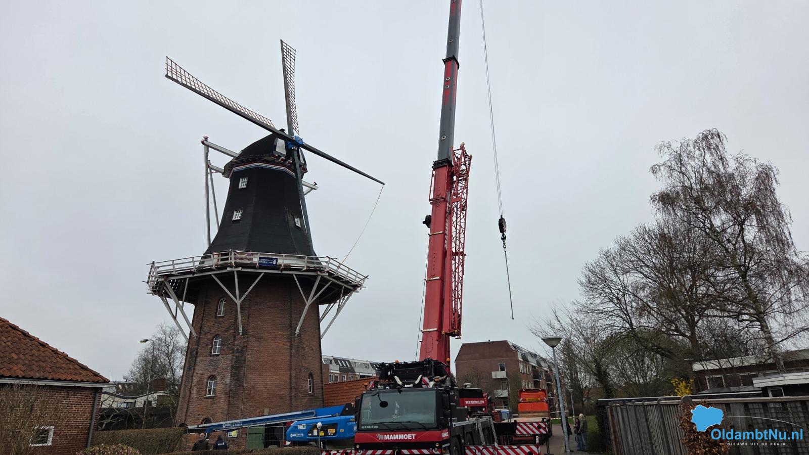 Molen Dijkstra weer compleet: wieken teruggeplaatst