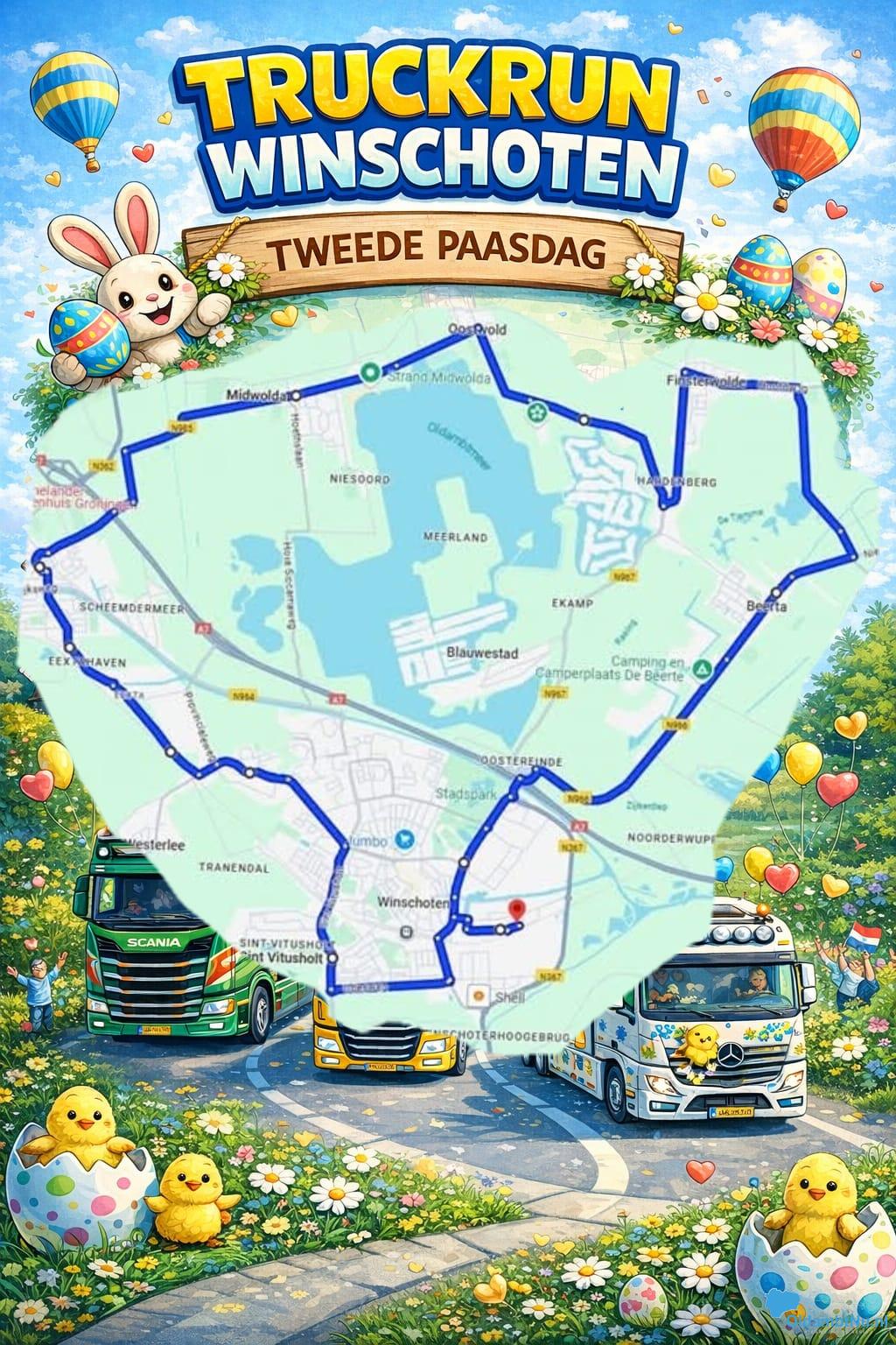Dit is de route van de Truckrun op tweede paasdag 2026