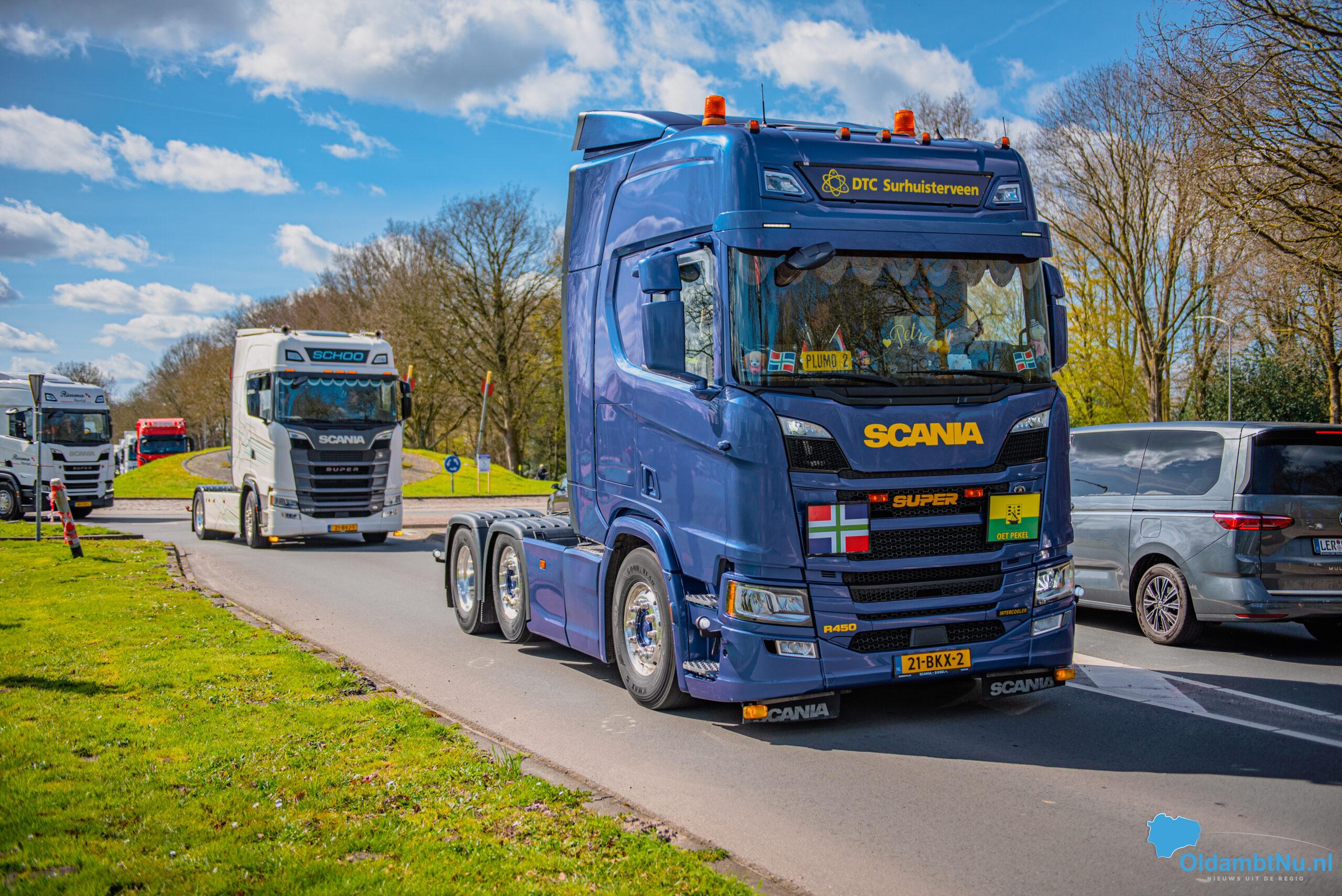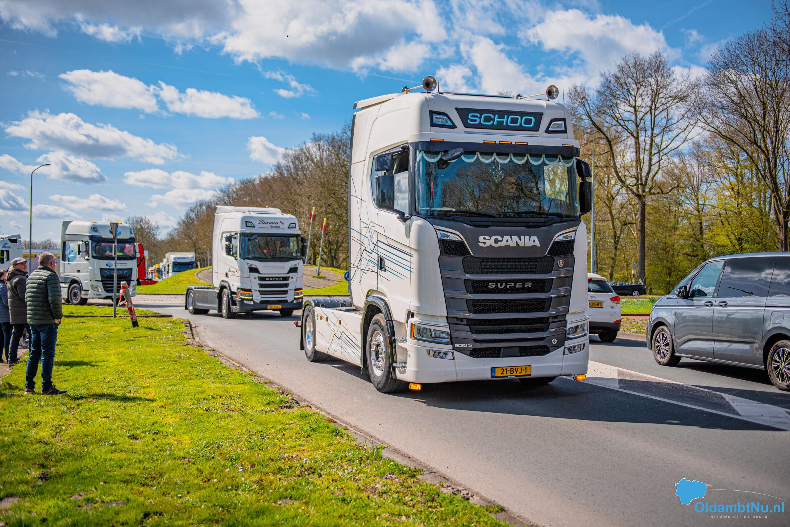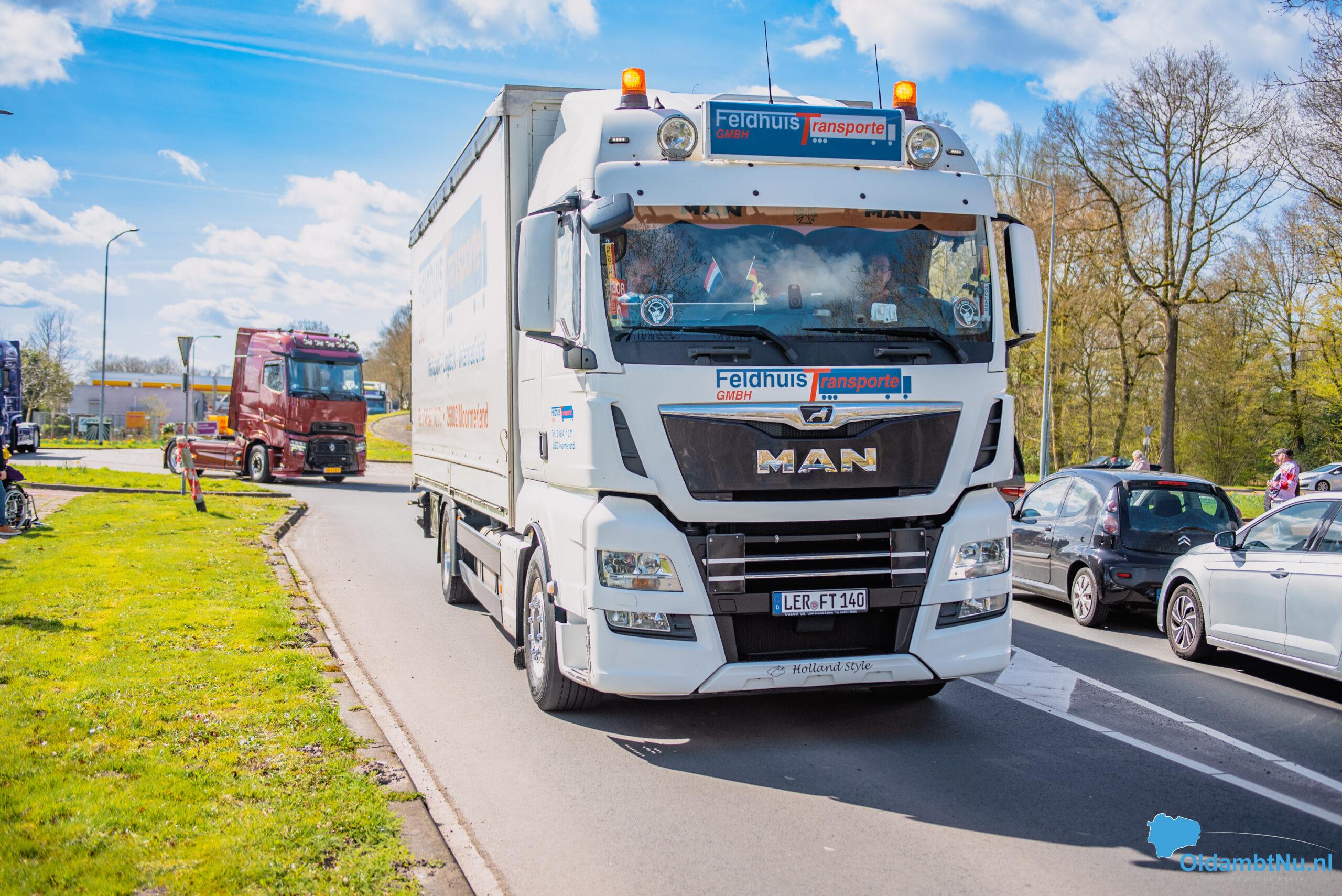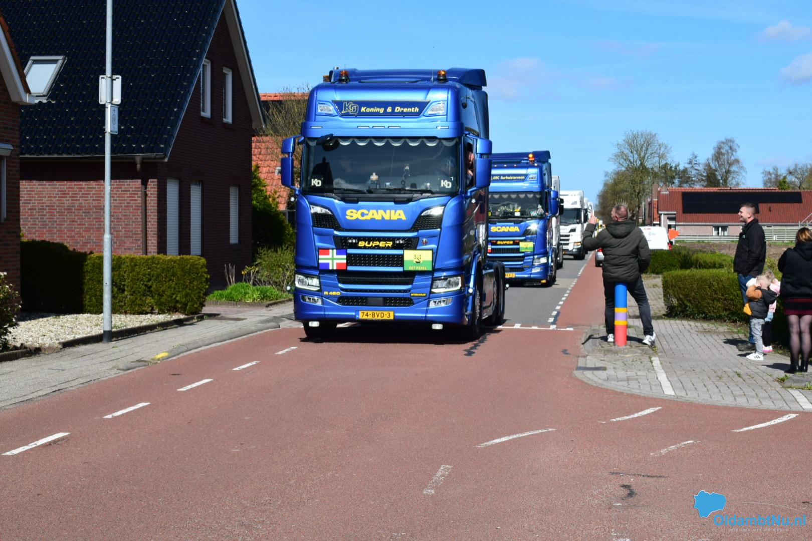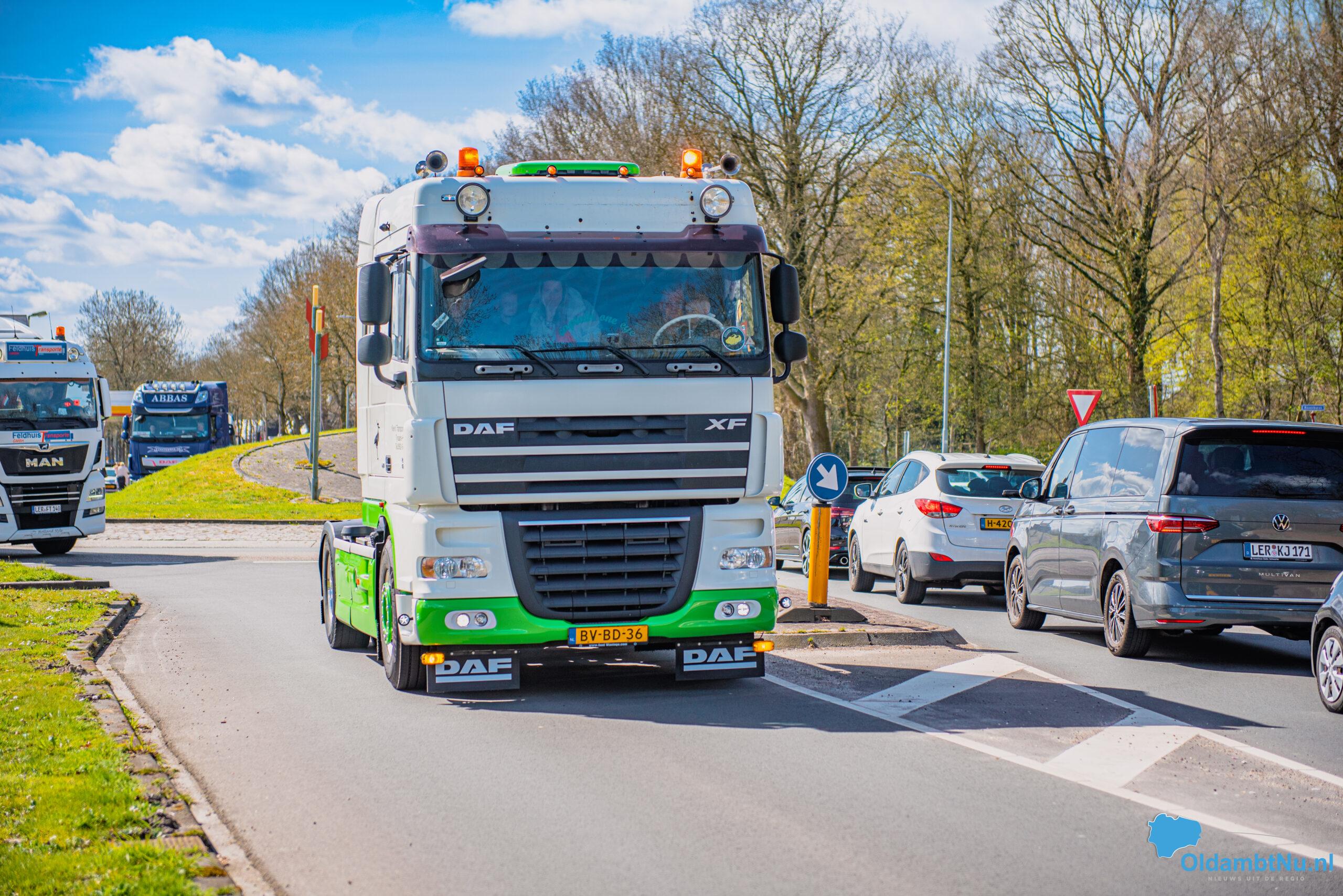 Oldambt – Op tweede paasdag is rond 13.00 uur vanaf de Havenkade in Winschoten een indrukwekkende colonne van circa 60 vrachtwagens vertrokken voor de jaarlijkse Truckrun. Het evenement is speciaal bedoeld voor mensen met een (verstandelijke) beperking, die als bijrijder mee mochten tijdens de rit.