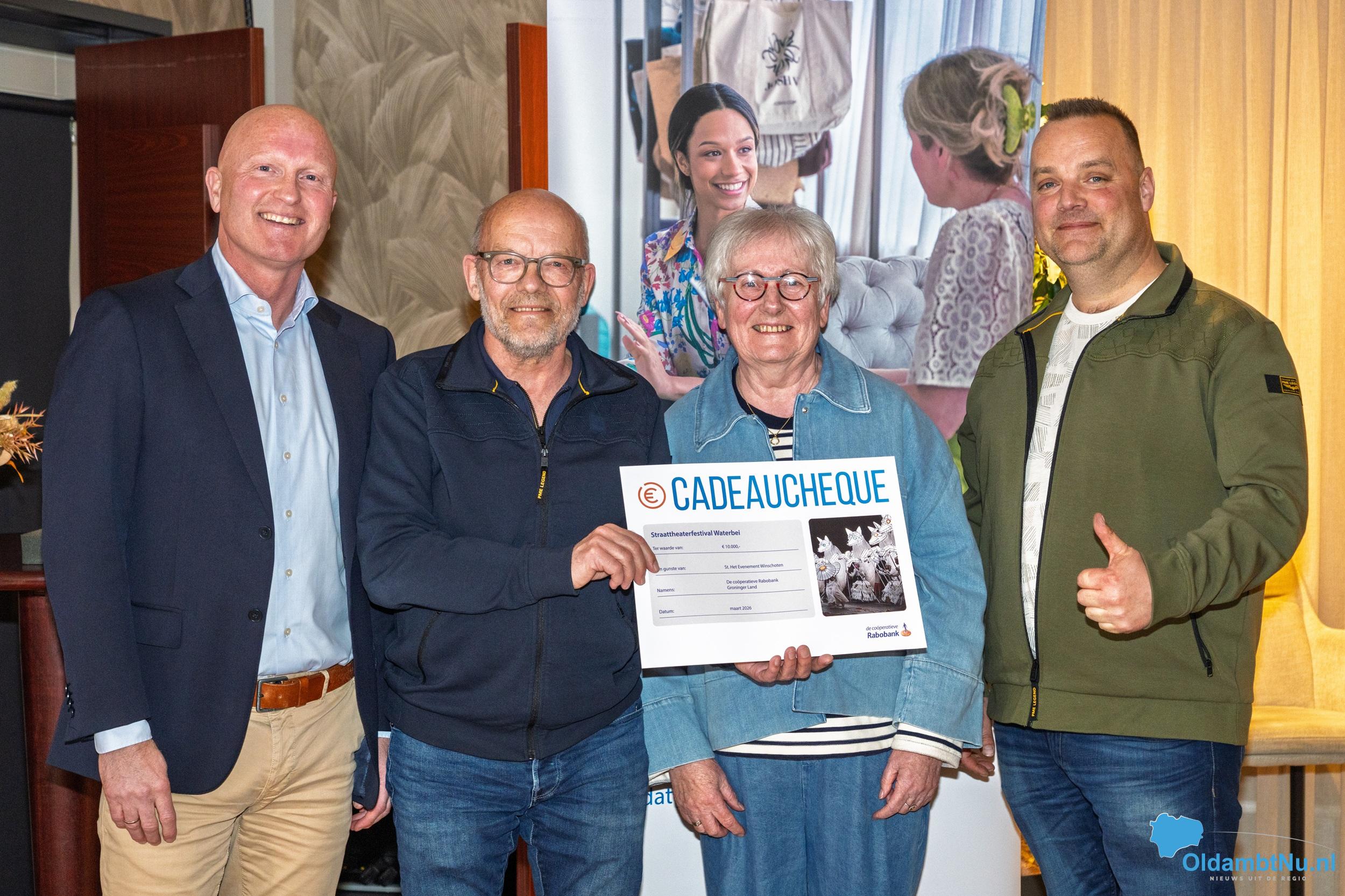 De cheque van de Rabobank werd onlangs uitgereikt tijdens een bijeenkomst in De Hardenberg in Finsterwolde. De organisatie van Waterbei is bijzonder dankbaar voor deze steun, die bijdraagt aan het mogelijk maken van het volledig gratis toegankelijke straattheaterfestival.