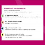 Sinds 1 juli 2020 heeft Nederland een nieuwe donorwet. Iedereen vanaf 18 jaar komt in het Donorregister. Je kunt je keuze zelf invullen op www.donorregister.nl. Maak je geen keuze? Dan kom je in het register met ‘Geen bezwaar tegen orgaandonatie’. Dat betekent dat je organen en weefsels na je overlijden naar een patiënt kunnen gaan. Demissionair minister Van Ark van het ministerie van VWS: “Orgaandonatie is geen makkelijk onderwerp om over te praten, maar het is belangrijk dat iedereen bewust zijn of haar keuze invult in het Donorregister. Op dit moment hebben bijna 10 miljoen volwassenen dit al gedaan.”
