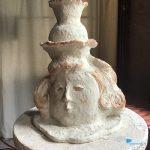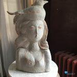 Bad Nieuweschans – Cilia de la Court maakt, behalve schilderijen ook beelden van keramiek (gebakken klei). Veelal stellen ze voor: vogels, katten, mensen, mens en dier, maar er zijn ook fonteintjes die sproeien op zonne-energie en waterspuwers voor bij een vijver.